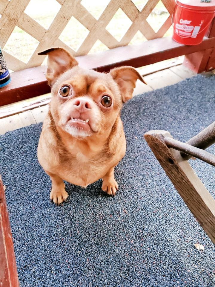 His most unique quality is his little under-bite. That comes from the Pekingese in him. It gives him that little gremlin look.