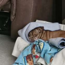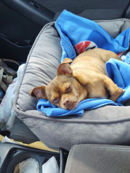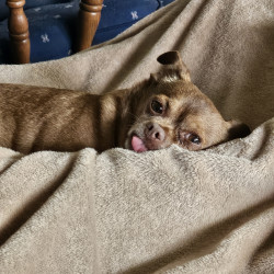 Rusty is a laid back, lazy little dog. His favorite things are belly rubs and being with his people. He's also quite the lady's man.