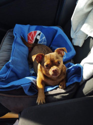 Rusty is a rescue. He had been on his own in the mountains for over a month before he trusted people enough to come down for food. Just the fact that a little guy like him survived that long on his own should show that he deserves the most out of life and we try to give him the best life possible.