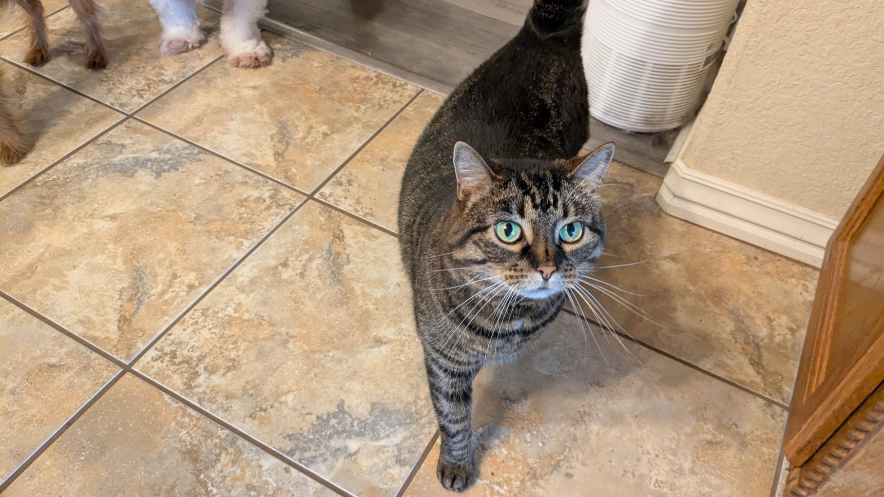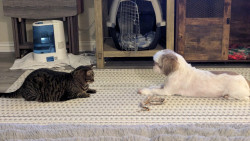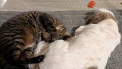 Learn MoreHer favorite toy is often our dog, Buddy. Since they are both rescues, they formed a quick and natural bond. She delights in pouncing on him from furniture, corners, and doorways, and the two can often be found chasing each other through the house. They genuinely look out for one another. Buddy reminds us when it’s time to feed her, and she never fails to alert us when he’s ready to come back inside. She loves Temptations Mix Ups, but will always insist on sharing whatever treat Buddy receives.