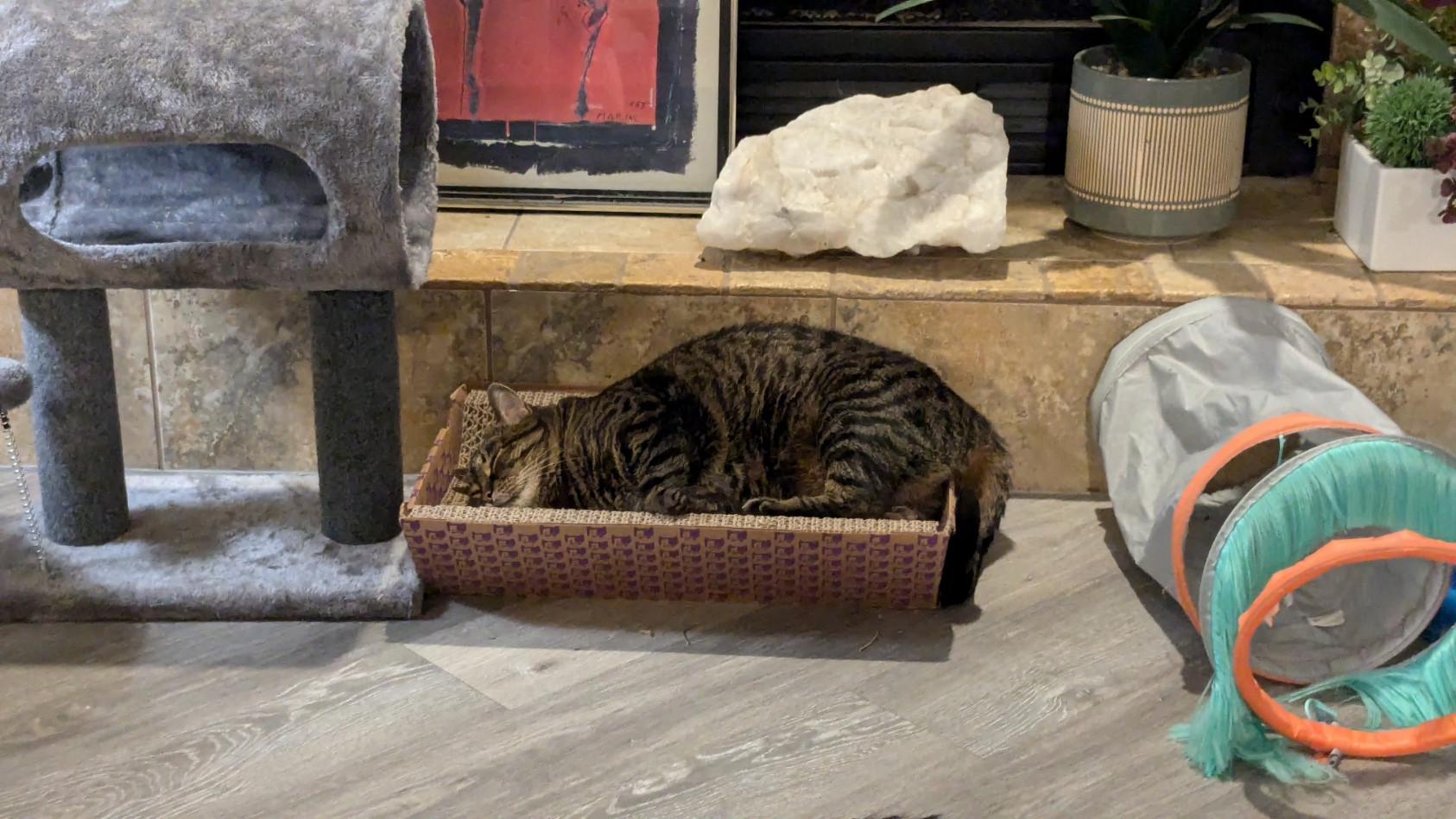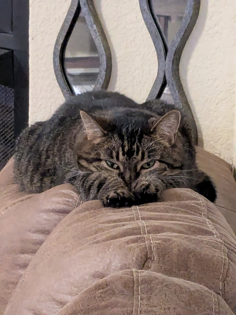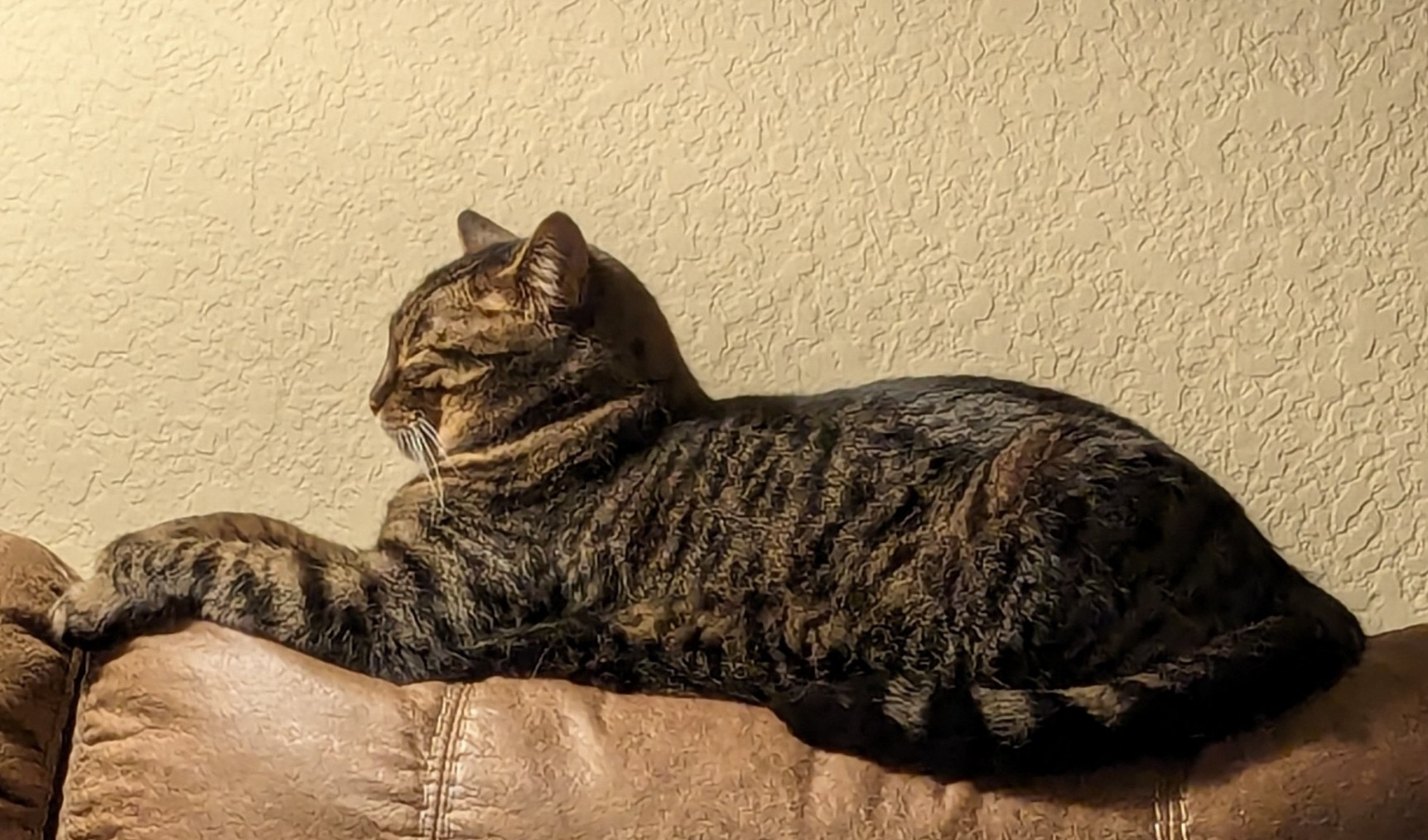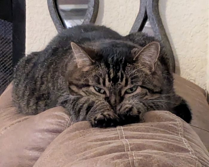 We truly believe Ruthie chose us. Out of all the cars in the parking lot, she hid beneath ours, as if she knew it was where she belonged. Although the ride home rattled her at first and it took a few days for her to settle, she soon found comfort and safety in our home. Over time, she became a gentle mother figure to our other pets, content to observe everything around her and make her opinions known. She’s a true sweetheart, with a confident, independent streak that makes her uniquely Ruthie.