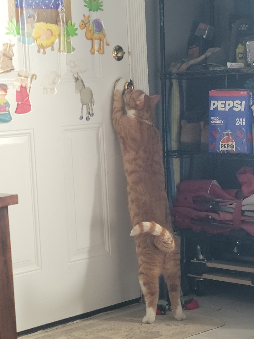 For being 2 yrs old,he is a huge cat and weight is heavy. He has shown that he will do stuff to get what he wants