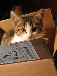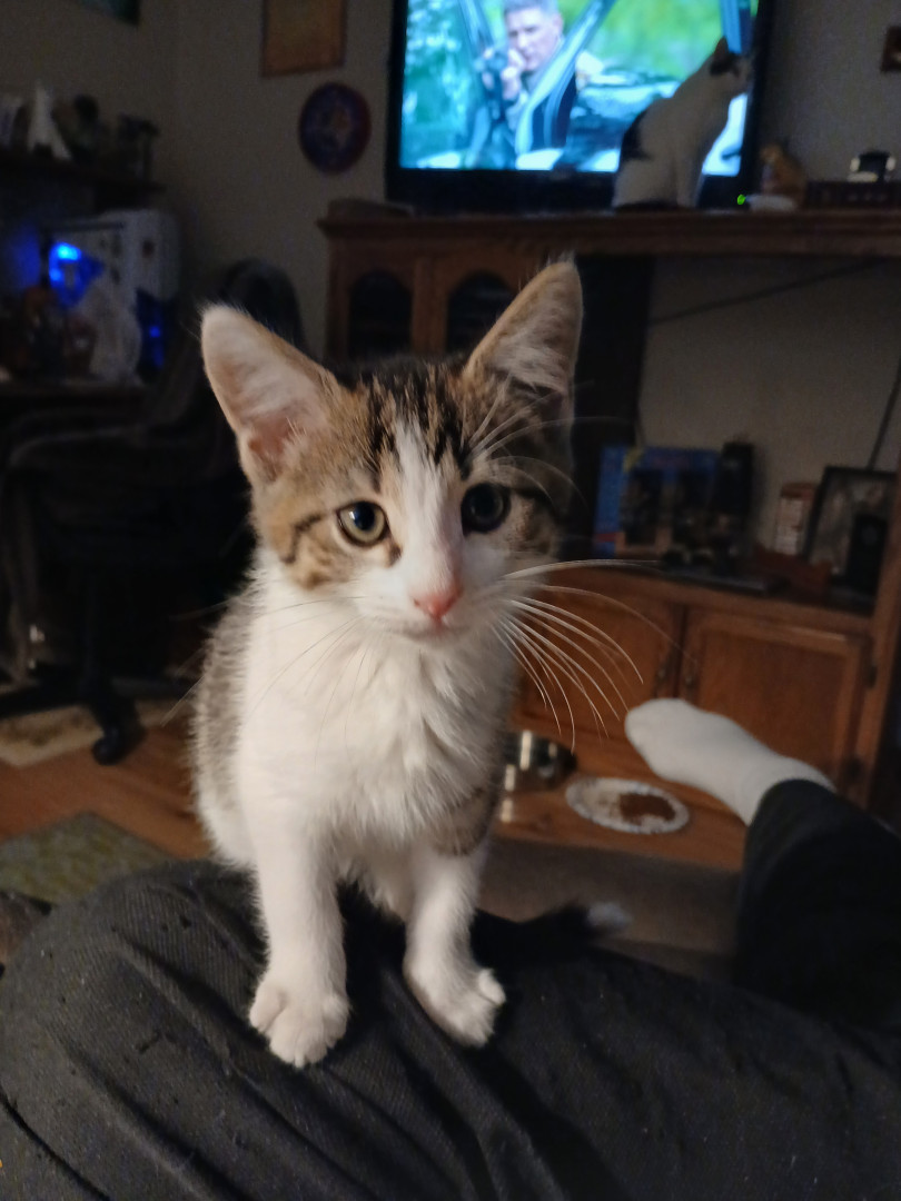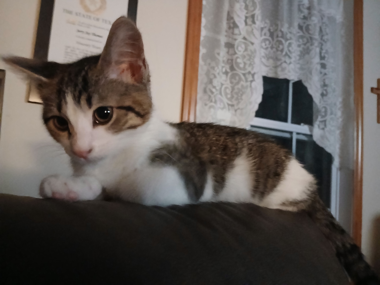 Sadie Belle is the runt of a litter of 5 six week old kittens abandoned in the woods. I adopted Sadie and her brother and sister. Loveable