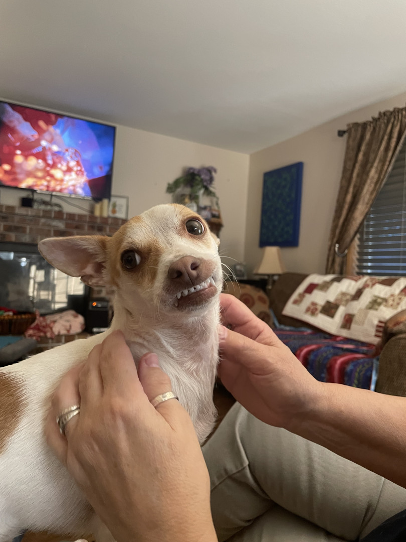 Sadie is a character, she is 2 and looks around to see what she can get into. She is the sweetest dog. She’s a Chihuahua mix.