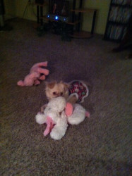 Learn MoreShe loves puparoni treats.. She has a Miss Piggy she loves when her sister will give it back.