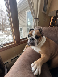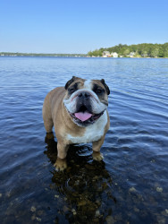 Sadie loves to wave at everyone and anyone whether she’s saying hello or goodbye. She could take a nap for hours on her back with her feet in the air. A few of her favorite words are PetSmart, Grandma, Grandpa, and beach. She is the perfect hiking buddy because she trails behind to make sure everyone is in her sight. During the holidays, you’ll find Sadie sitting in the kitchen all day starting and drooling at what is being cooked (especially ham and turkey).