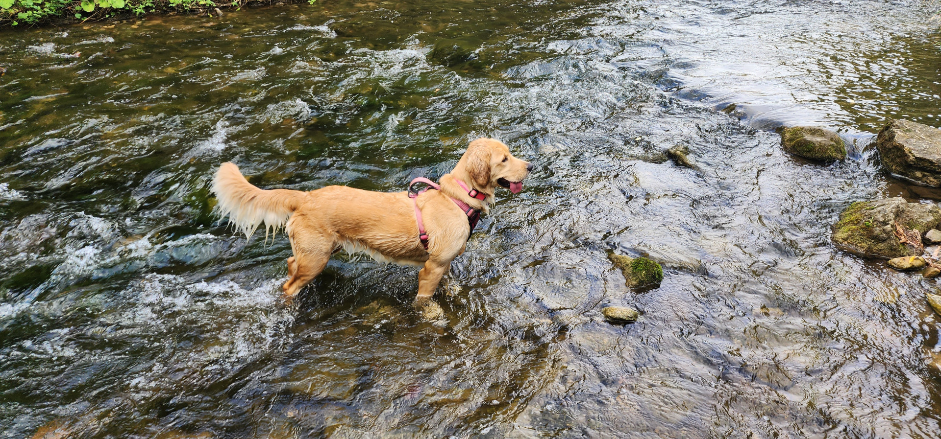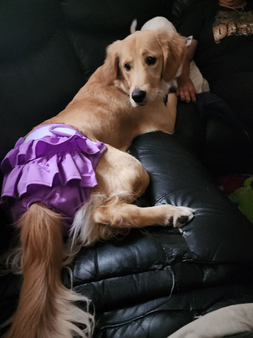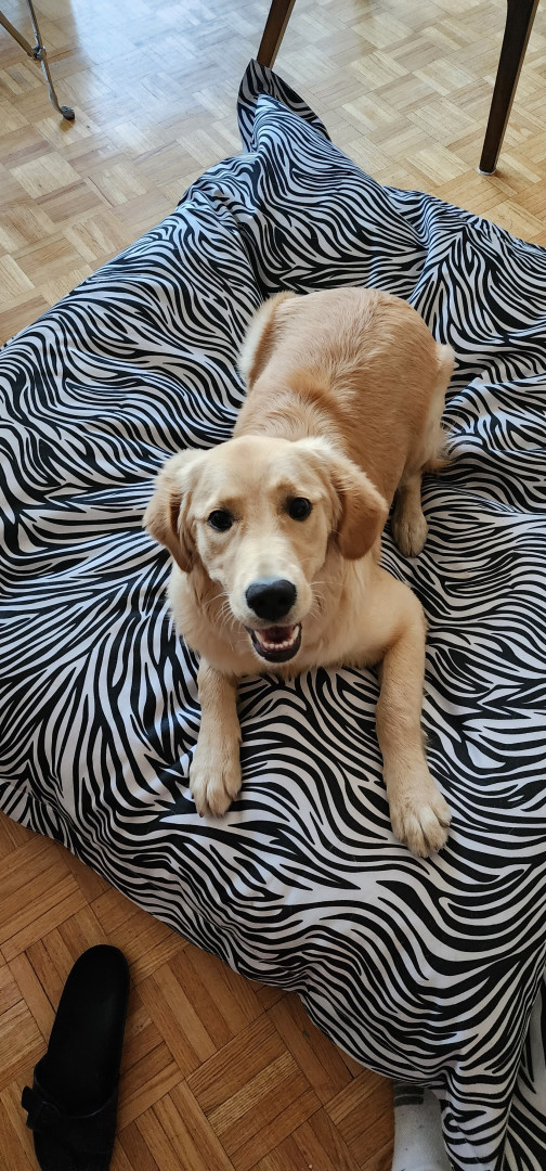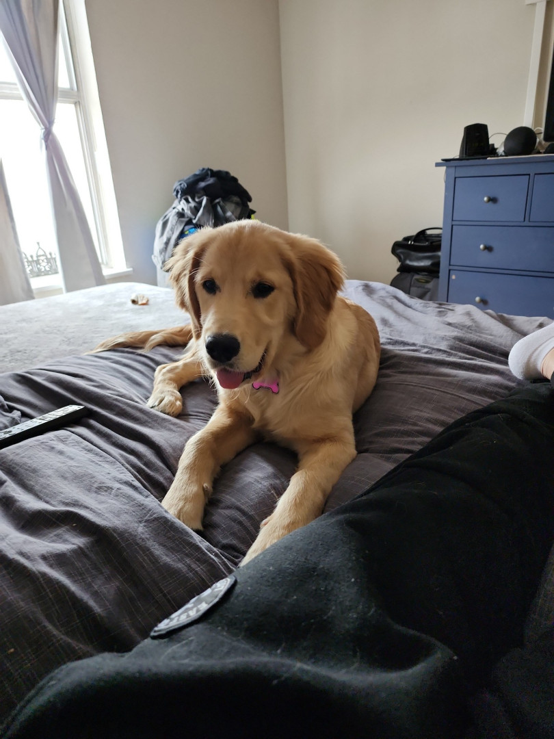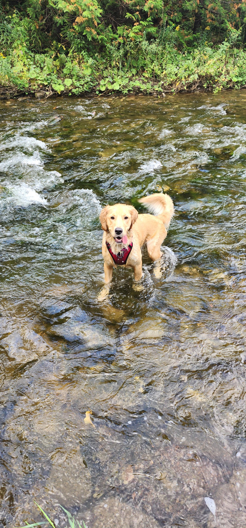 Well she is a true Golden she loves to love, playful, energetic and she aims to please. She has a silly nature and is such a joy.