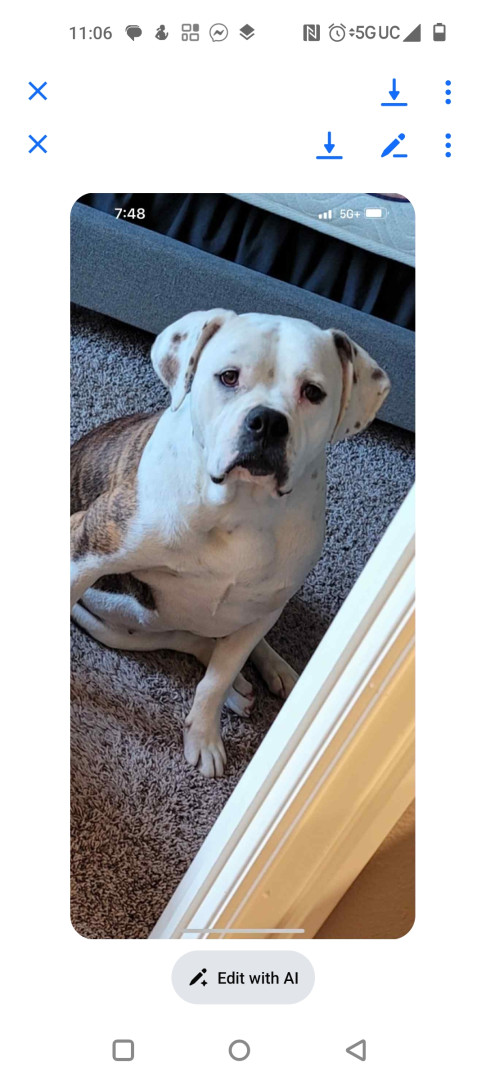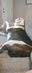 Sadie is a big puppy and love bug. She thinks she's still a lapdog and will climb wherever she can to lay on top of you. She's so ha