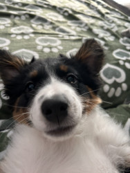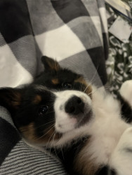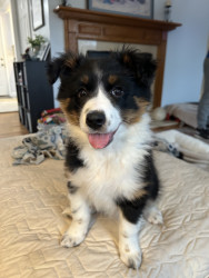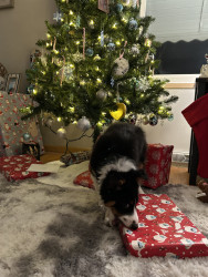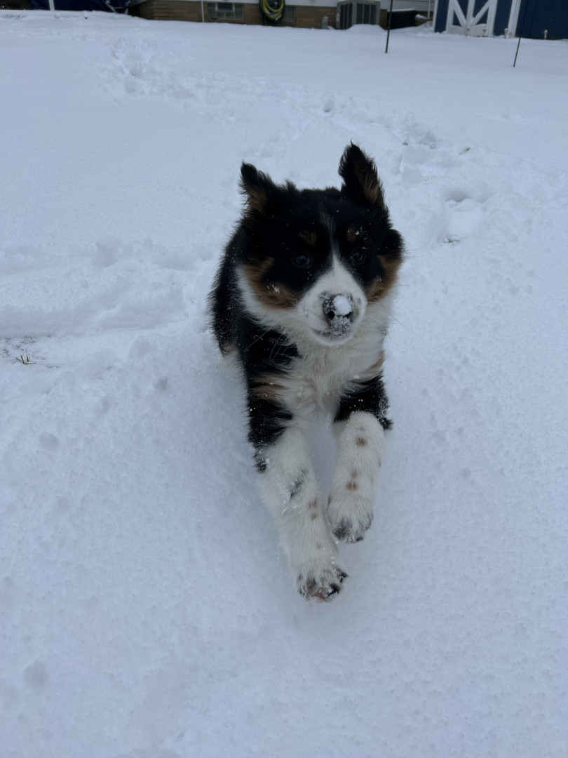 Sadie is still a puppy, but her personality is shining through! She enjoys picking ornaments off the Christmas tree, running through the snow, and occasionally snuggling on the couch!