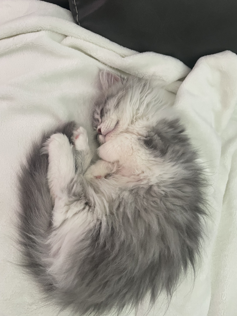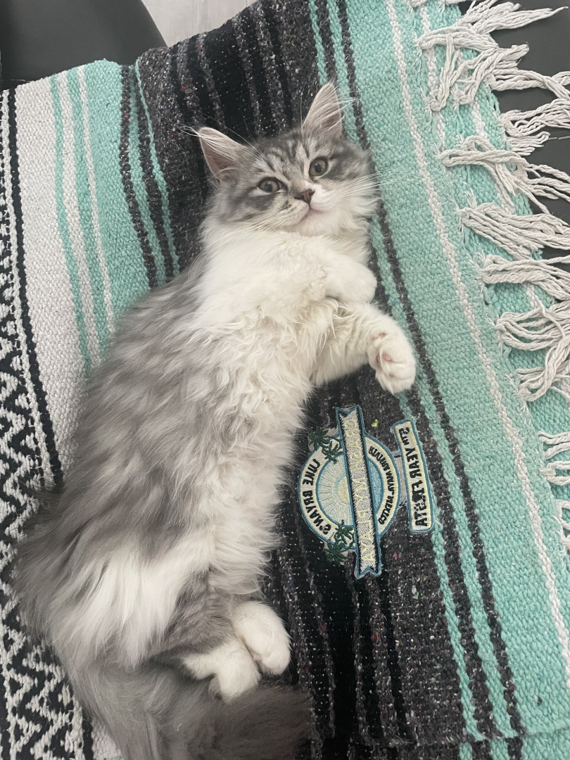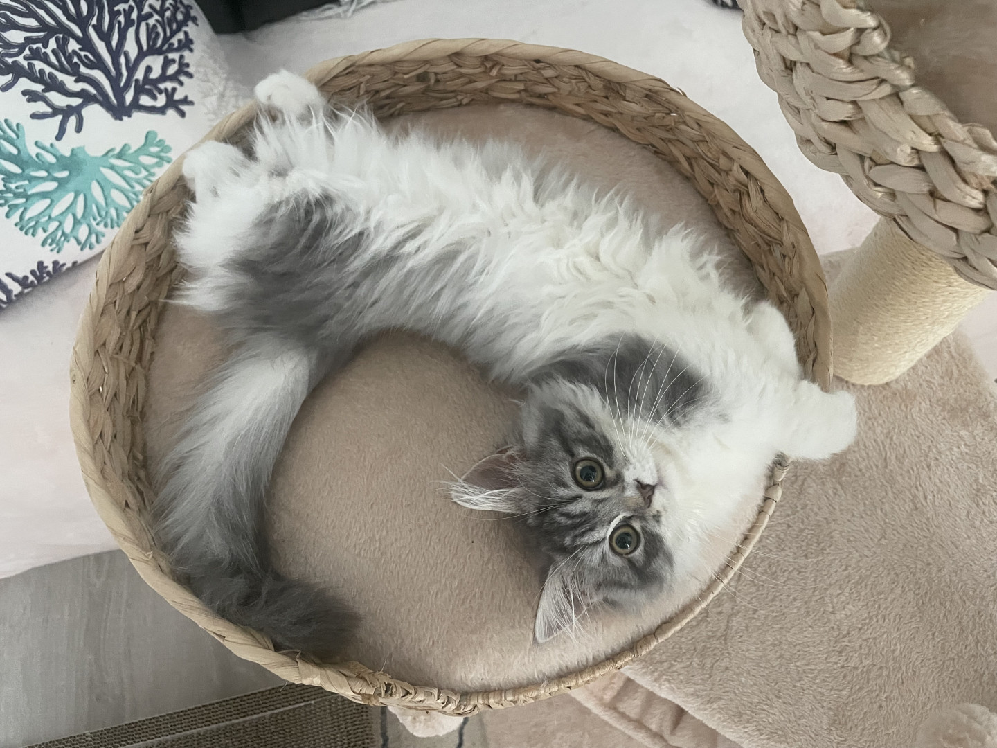 Sadie is a ragdoll munchkin. She is super sweet and fluffy. She loves to purr and she’s a very playful kitten.