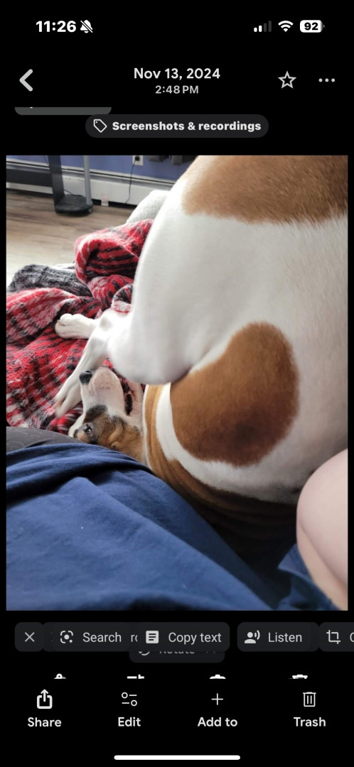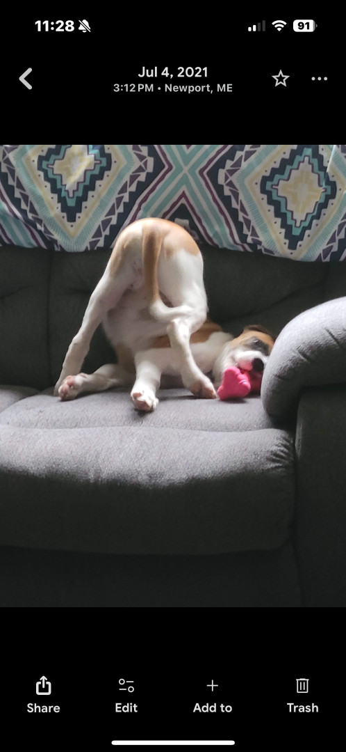Safari is a bit bashful until she knows you. Then she is non stop entertaining you, sitting on you and making sure you have the best times. I have had a few dogs in my life and she is by far the most loving and entertaining dog I have ever seen.