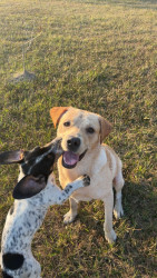 Sage is a gentle Labrador who gets along effortlessly with other dogs and is currently training to become a skilled duck dog.