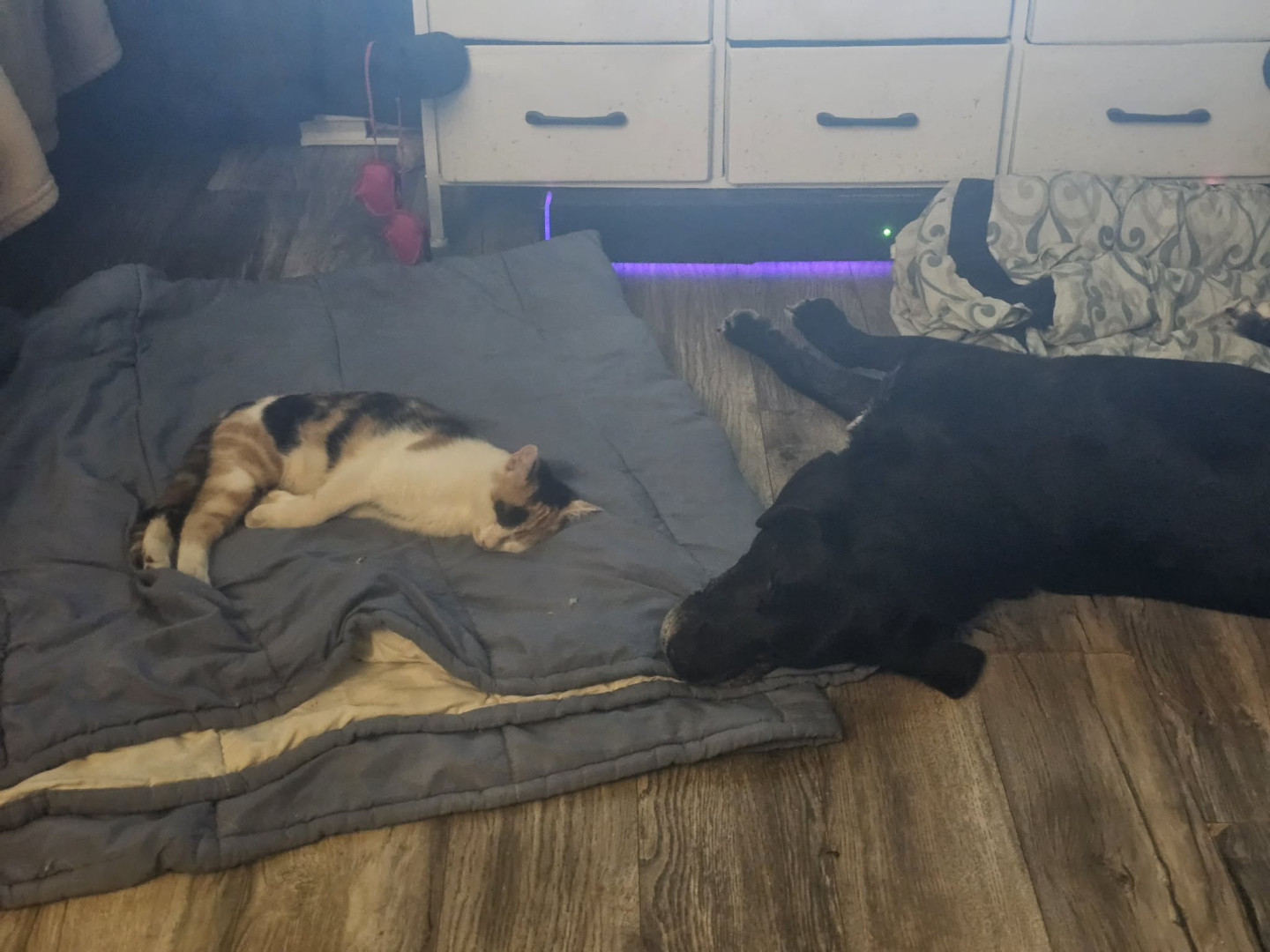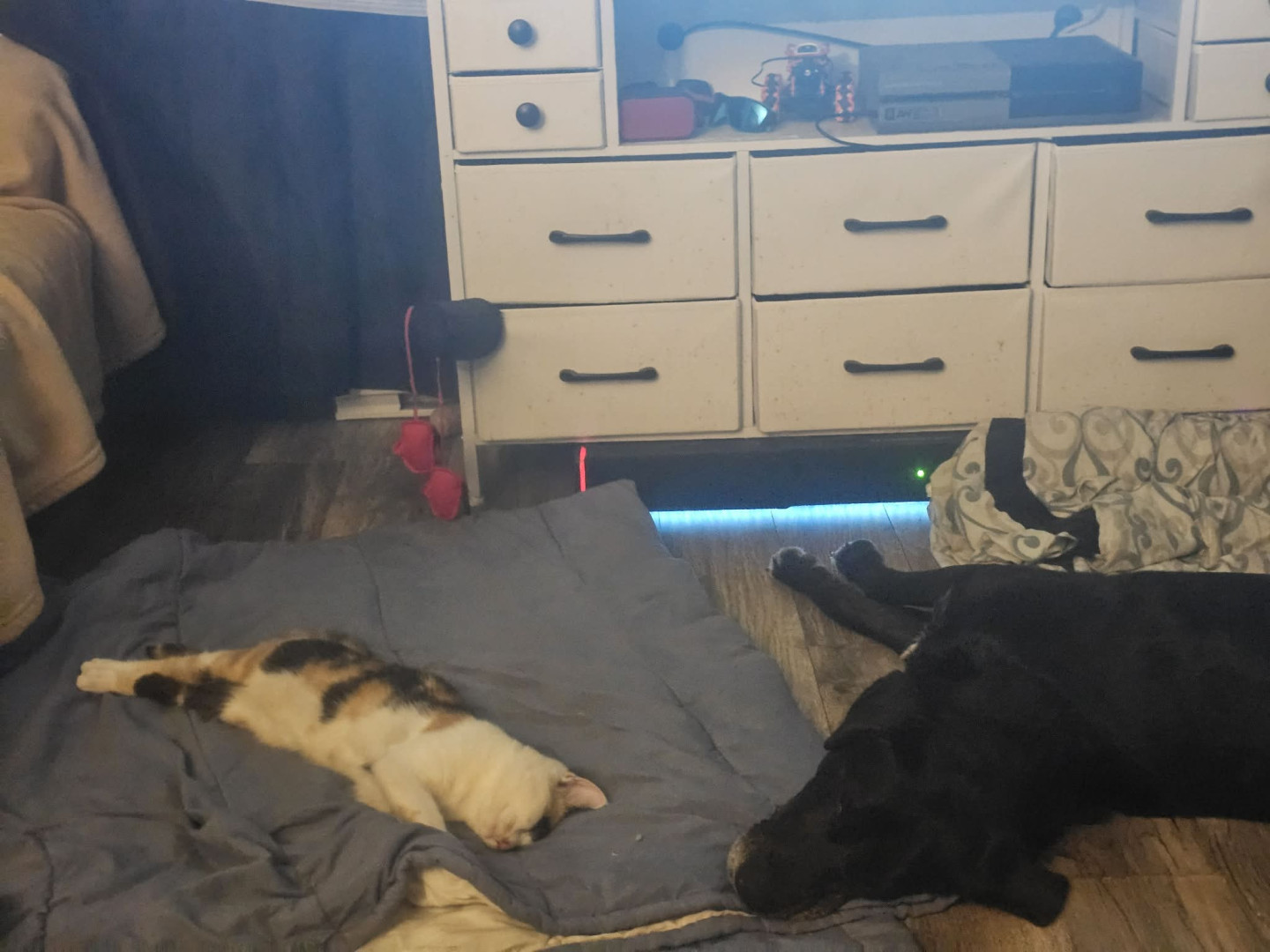 Learn MoreShe loves the catnip toys, toys with string but enjoys a bottle cap or a cardboard box can keep her entertained for hours when she's awake by herself.