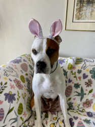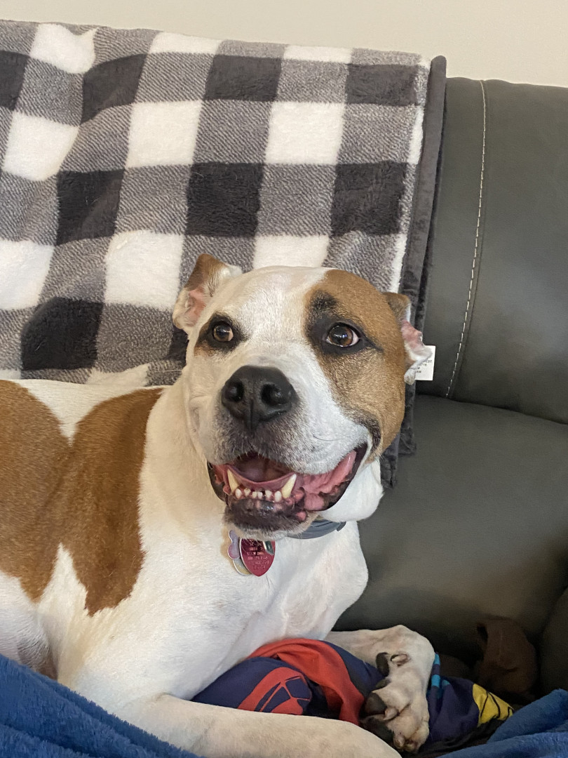 Sailor’s calm demeanor and love of other dogs. Watch out though, he can have stranger danger when it comes to people on his walks. He becomes a scaredy cat!