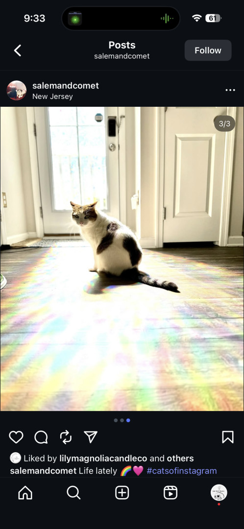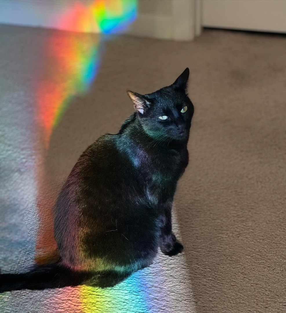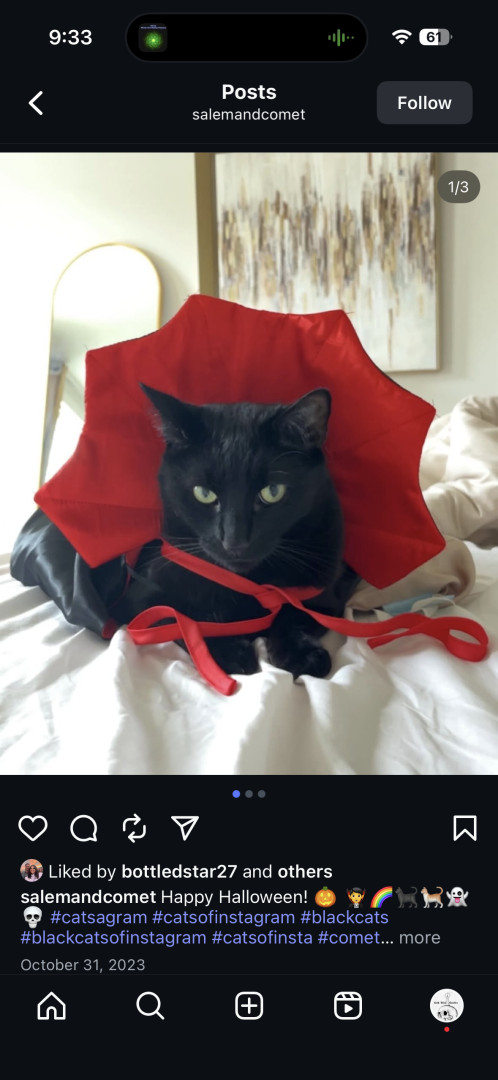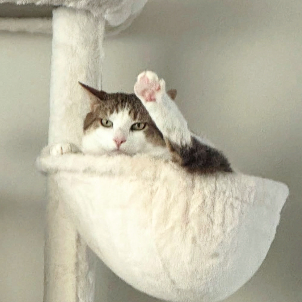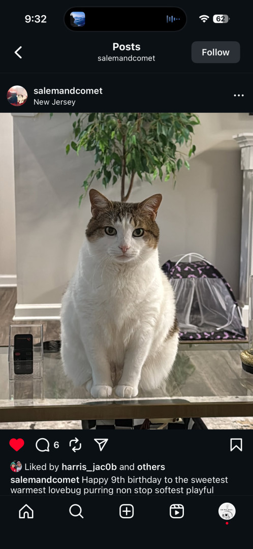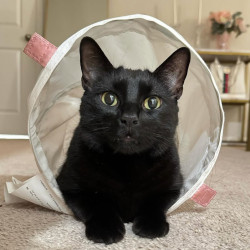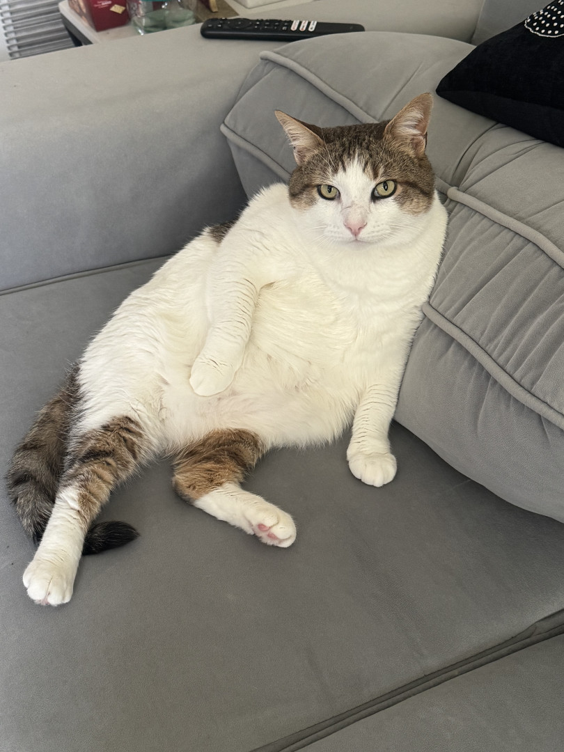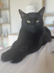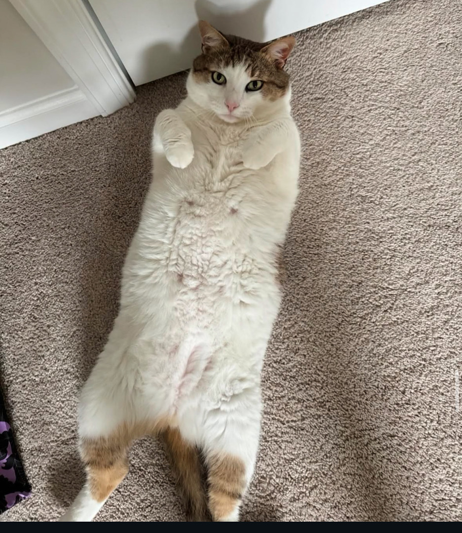 Comet sits and waits for treats all day. He loves to cuddle with mom and dad. He’s a big chonky purr machine.