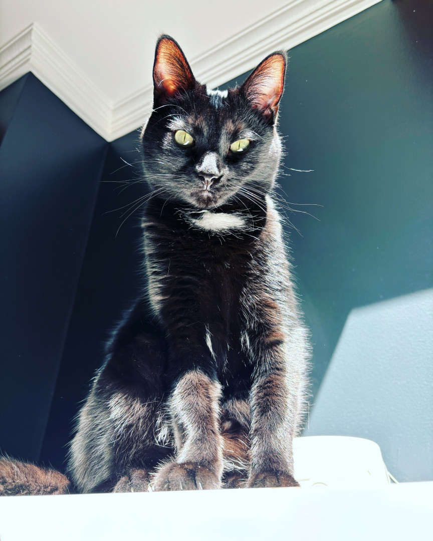 Despite being a tiny lady, she puts all 8 lbs into each step and stomps around like she owns the place (and she does). You can always hear her coming!