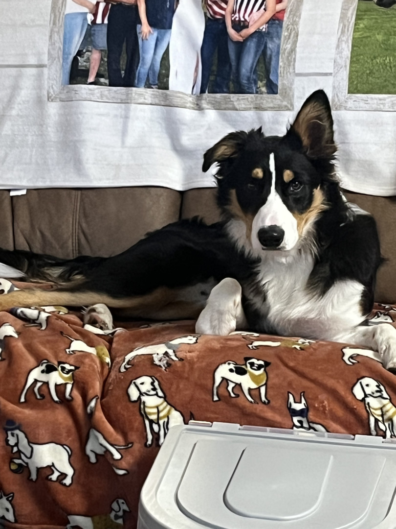 Sam is a 9 months old border collie very suspicious of everything, eager, loving, social towards people & dogs / cats!