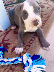 Samson is a 7-month old Pitbull puppy who loves to play. He is full of energy, life and joy. He is a smart boy and quick learner!