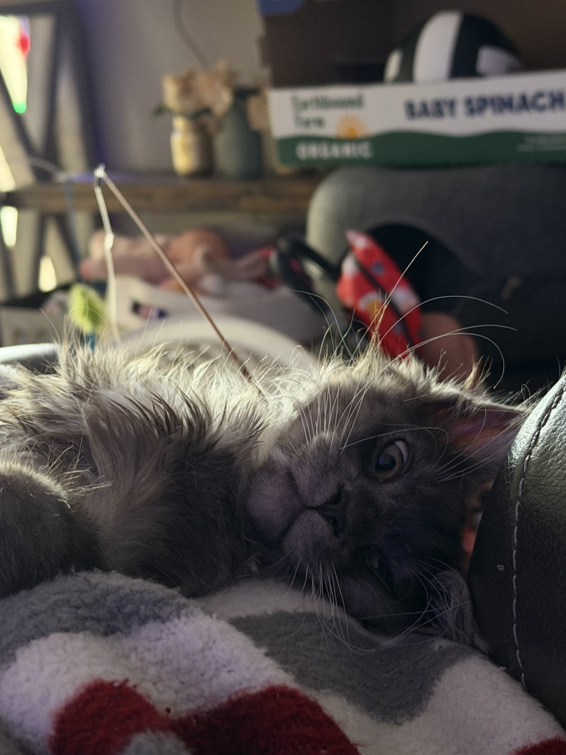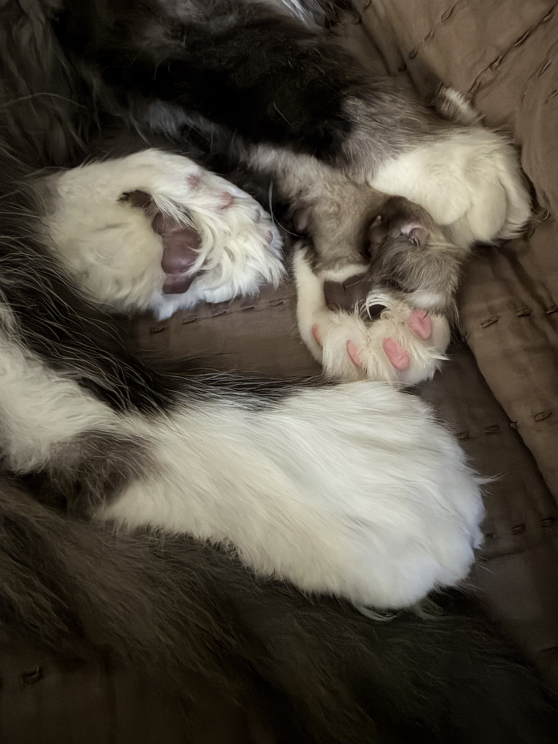 Samson is a polydactyl giant Maine coon with 27 toes and 29 claws (We think)! His energy is insane, but he sleeps equally as much.