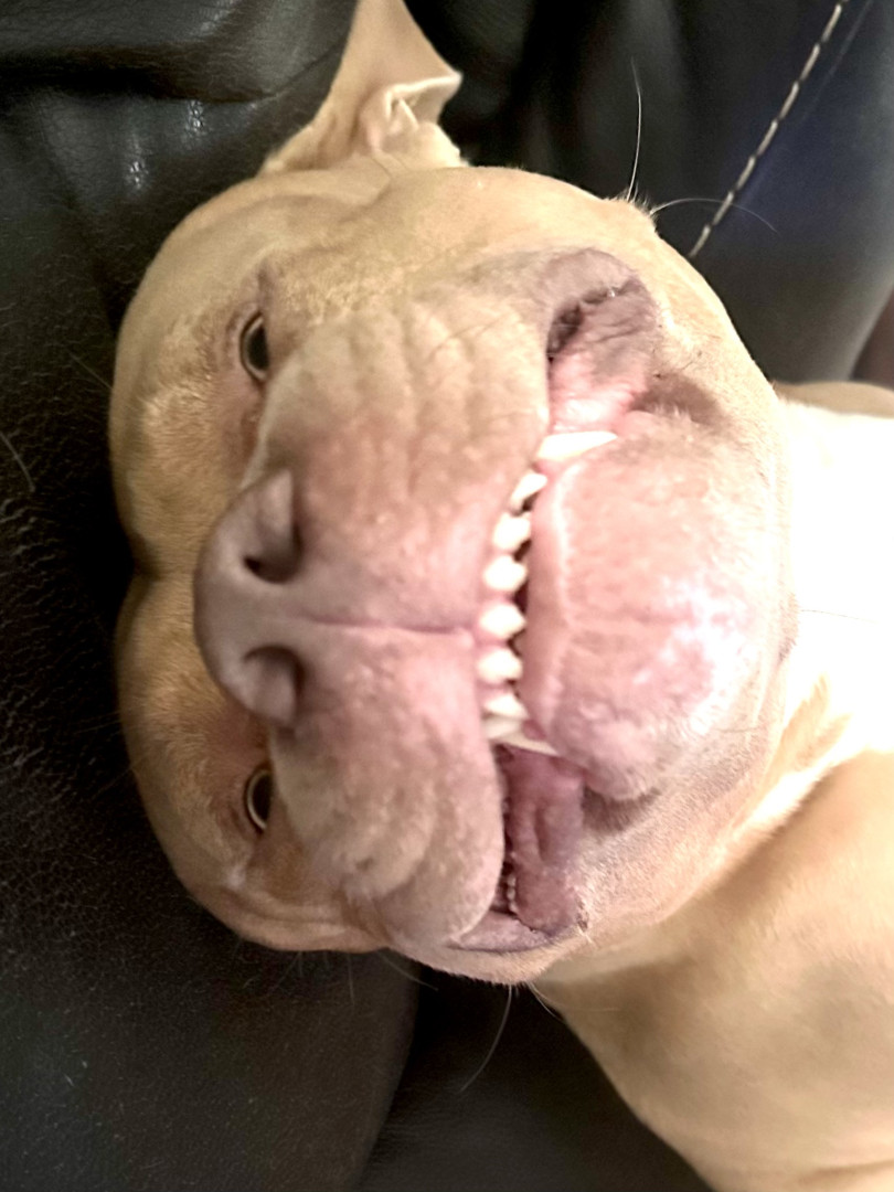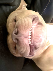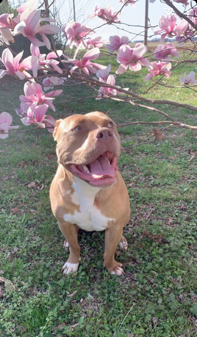 Sadie America bully breed. 80lbs, very sweet dog that suffers from seizures. Very protective of my daughter's. 7 years old, loves tug-a-