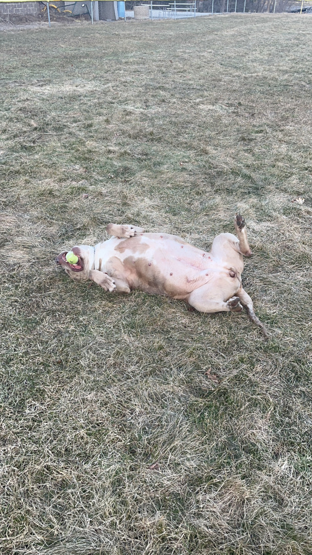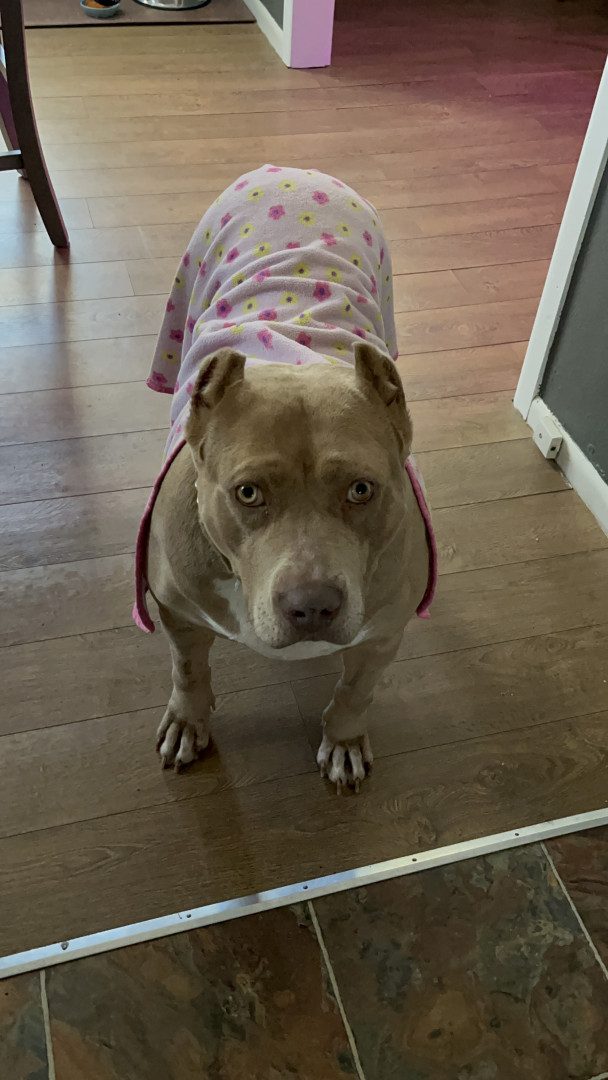 Sandi is a pure bread XL Bully at 140 lbs. She was acquired through MBK. Sweetest gal around!