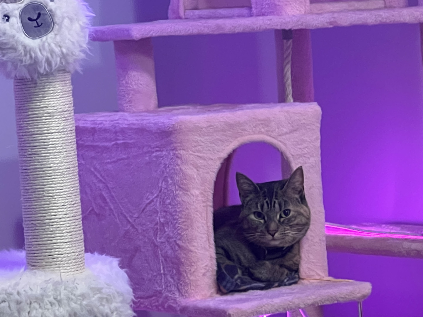 The cutest sassiest playful little monster around that’s my girl!! I love my cat food, my cat toys, and my cat tree