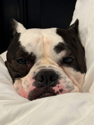 Because of his charismatic personality, he has become the emotional support of the family. Sammy is very affectionate and has to greet everyone even before using the bathroom. He also reacts in very funny ways to things that catch his attention.