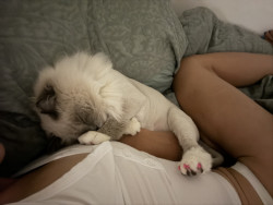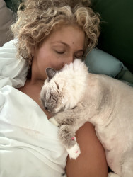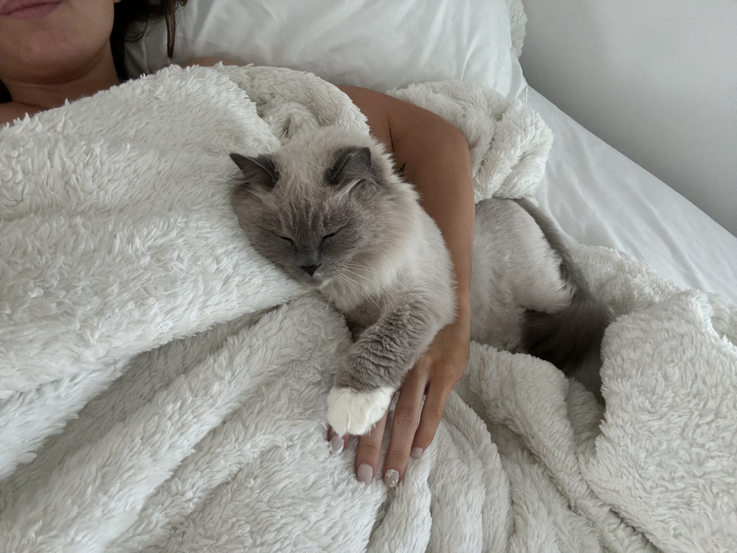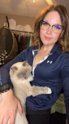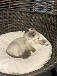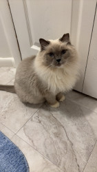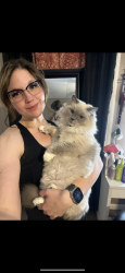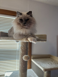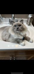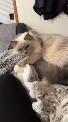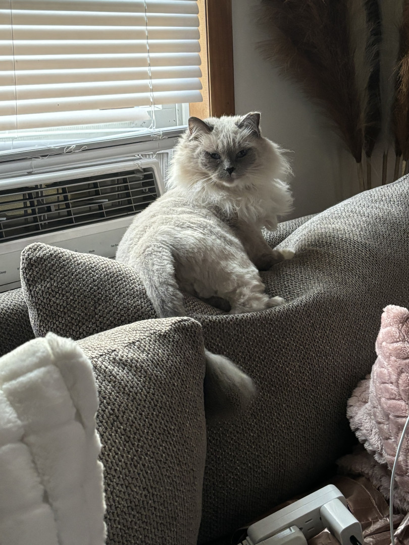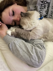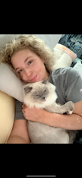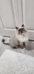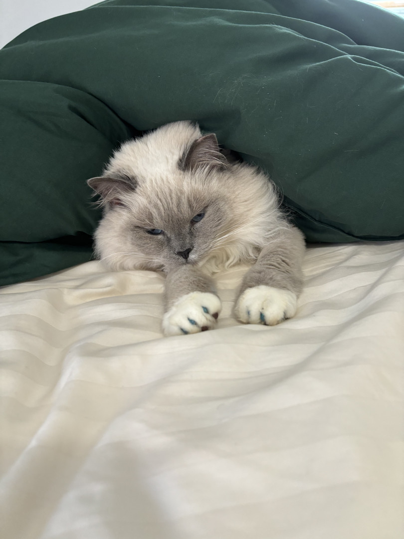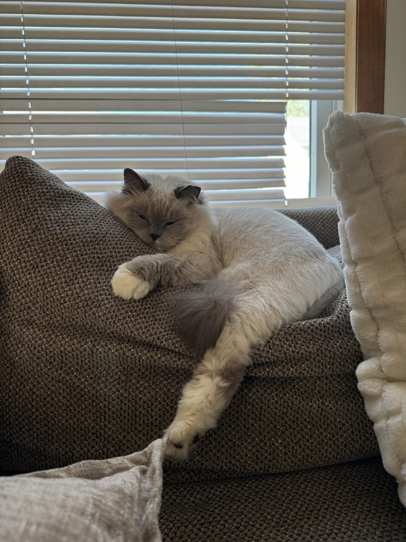Sapphire is a fluffy blue-point Birman Siamese rescue with the softest fur, gentlest soul, and an endless motor of love-filled purrs.