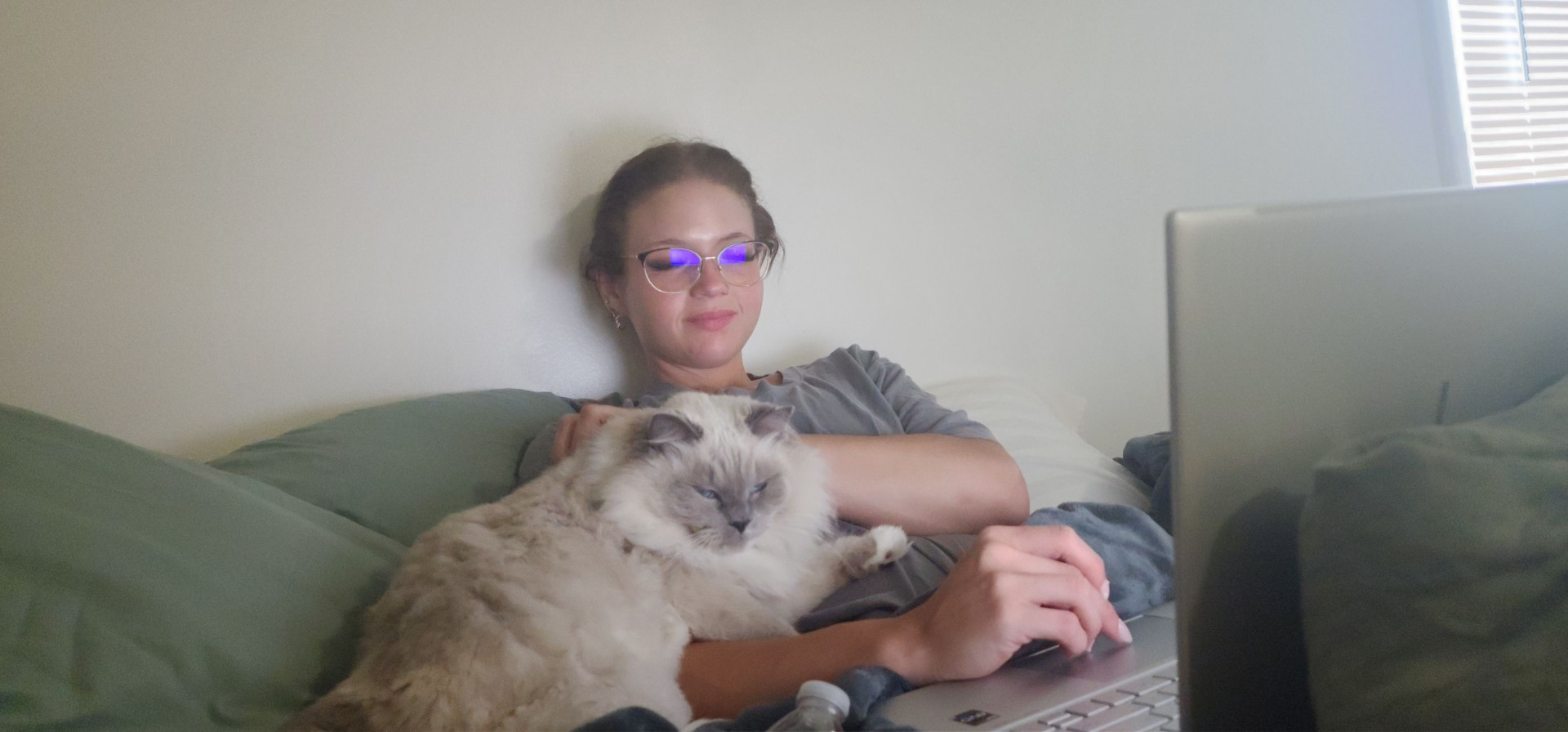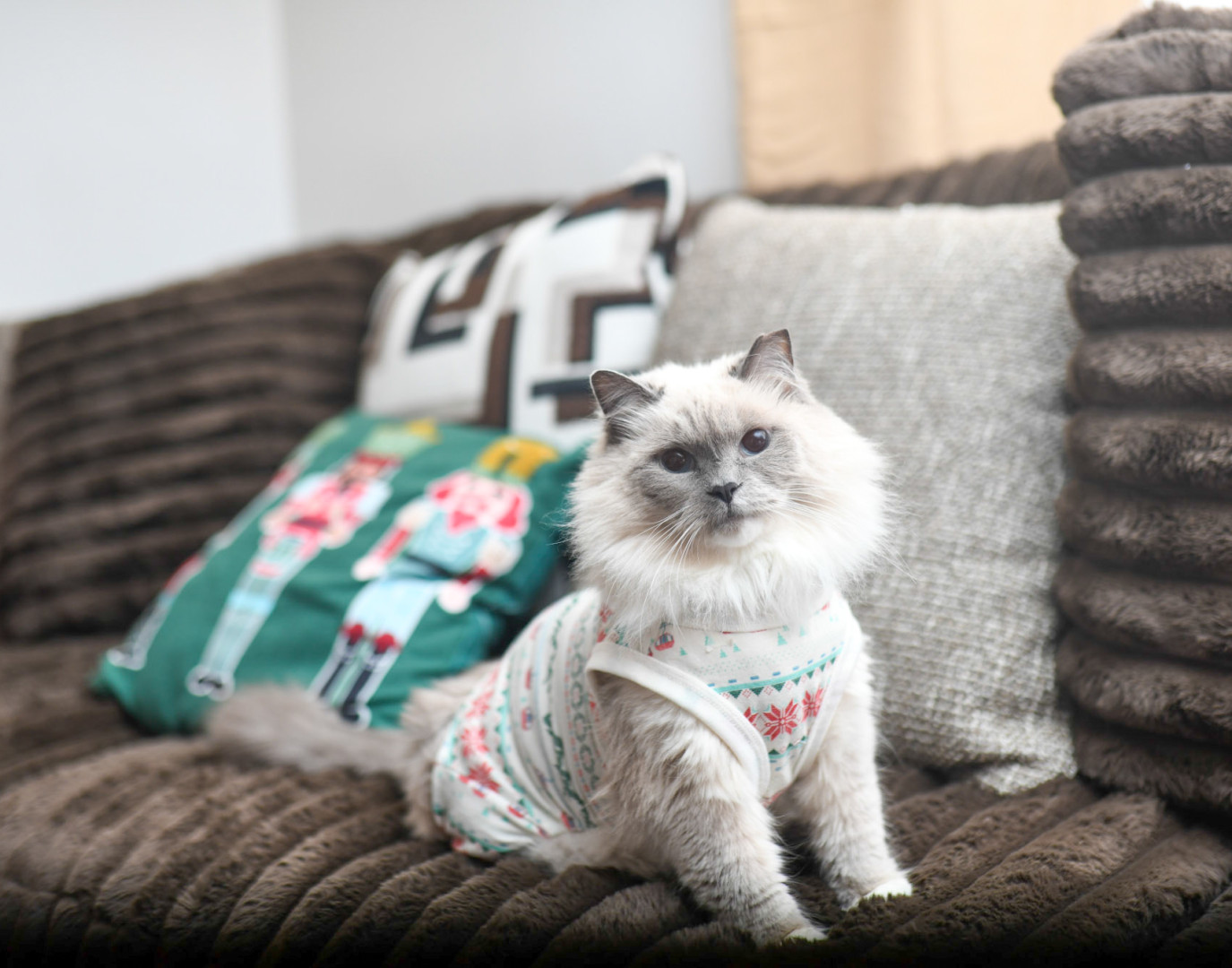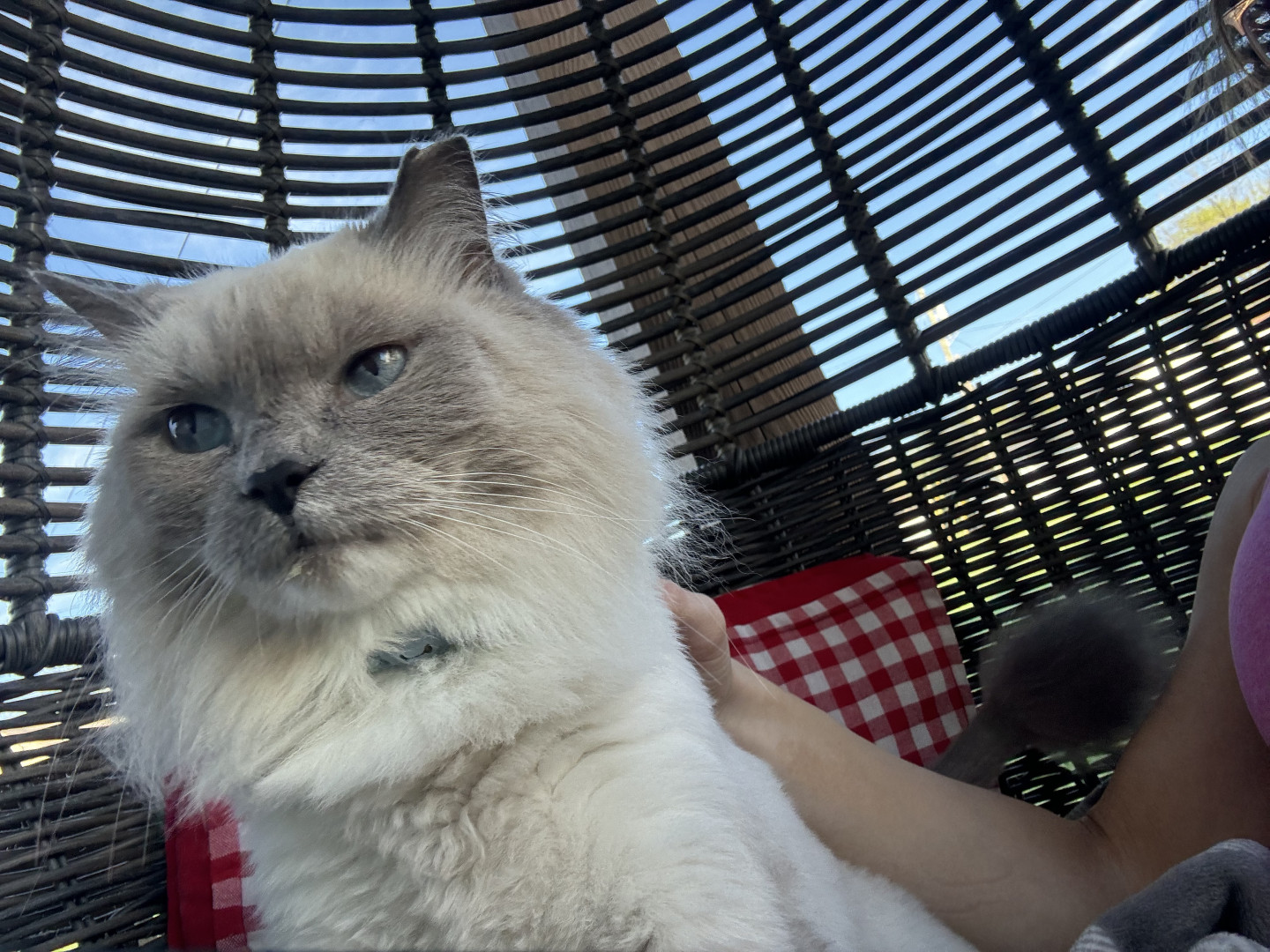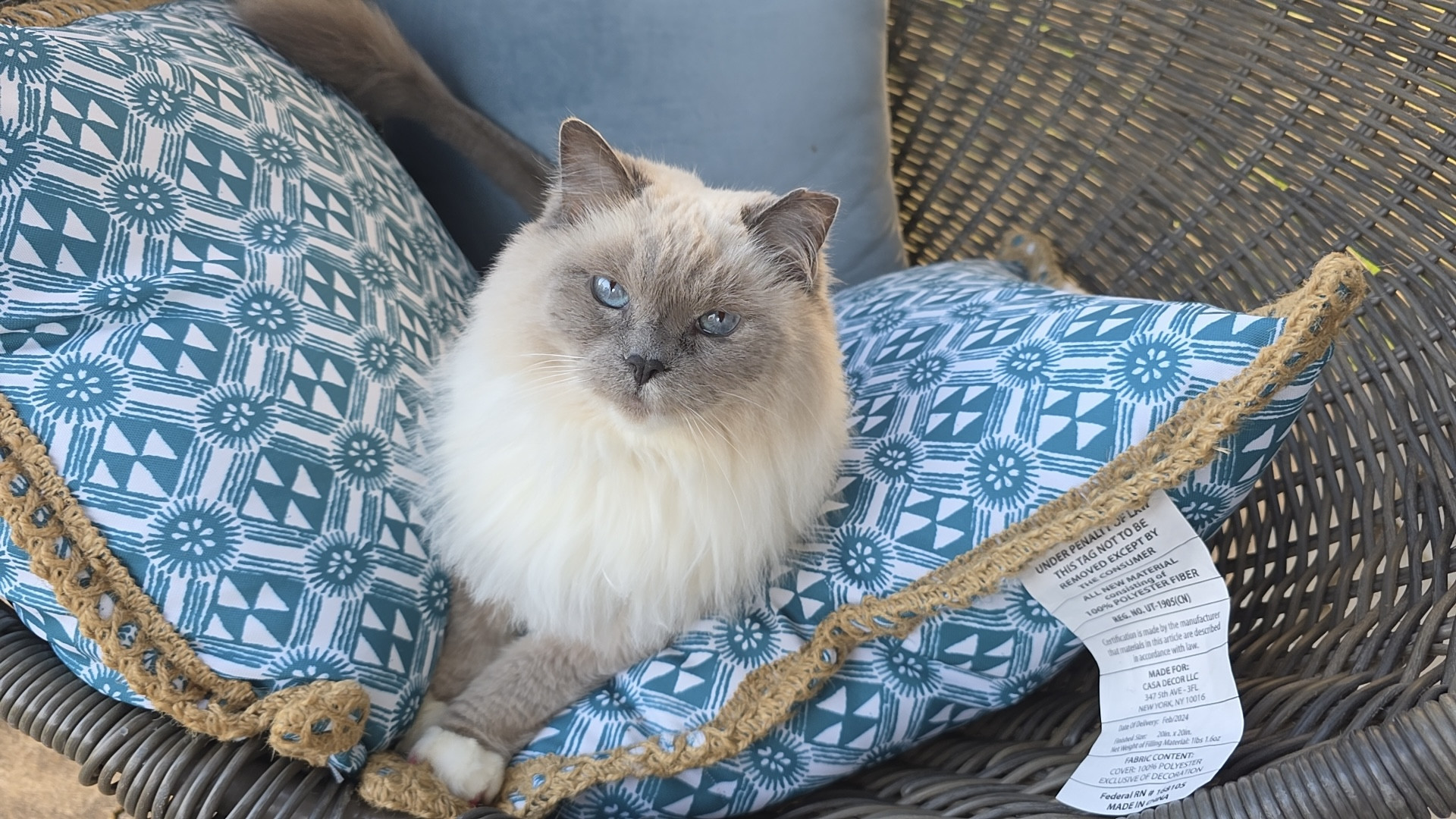 Sapphire is a fluffy blue-point Birman Siamese rescue with the softest fur, gentlest soul, and an endless motor of love-filled purrs.