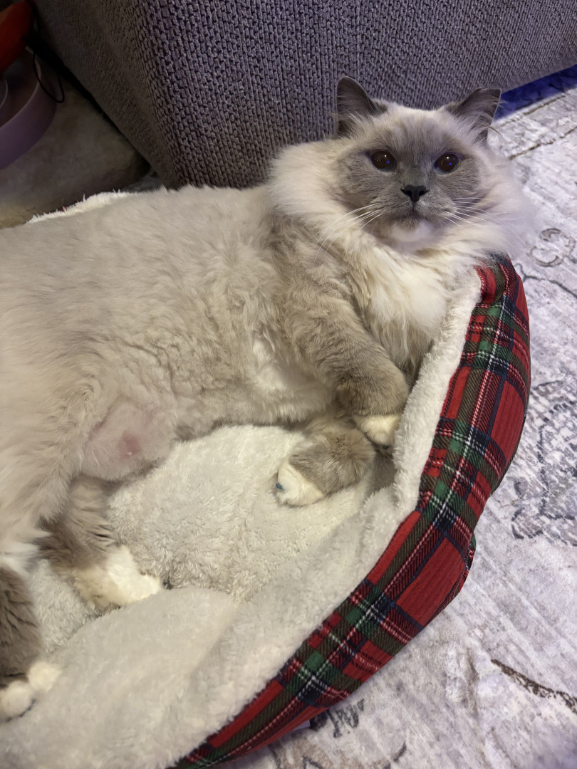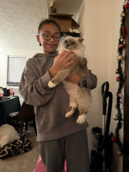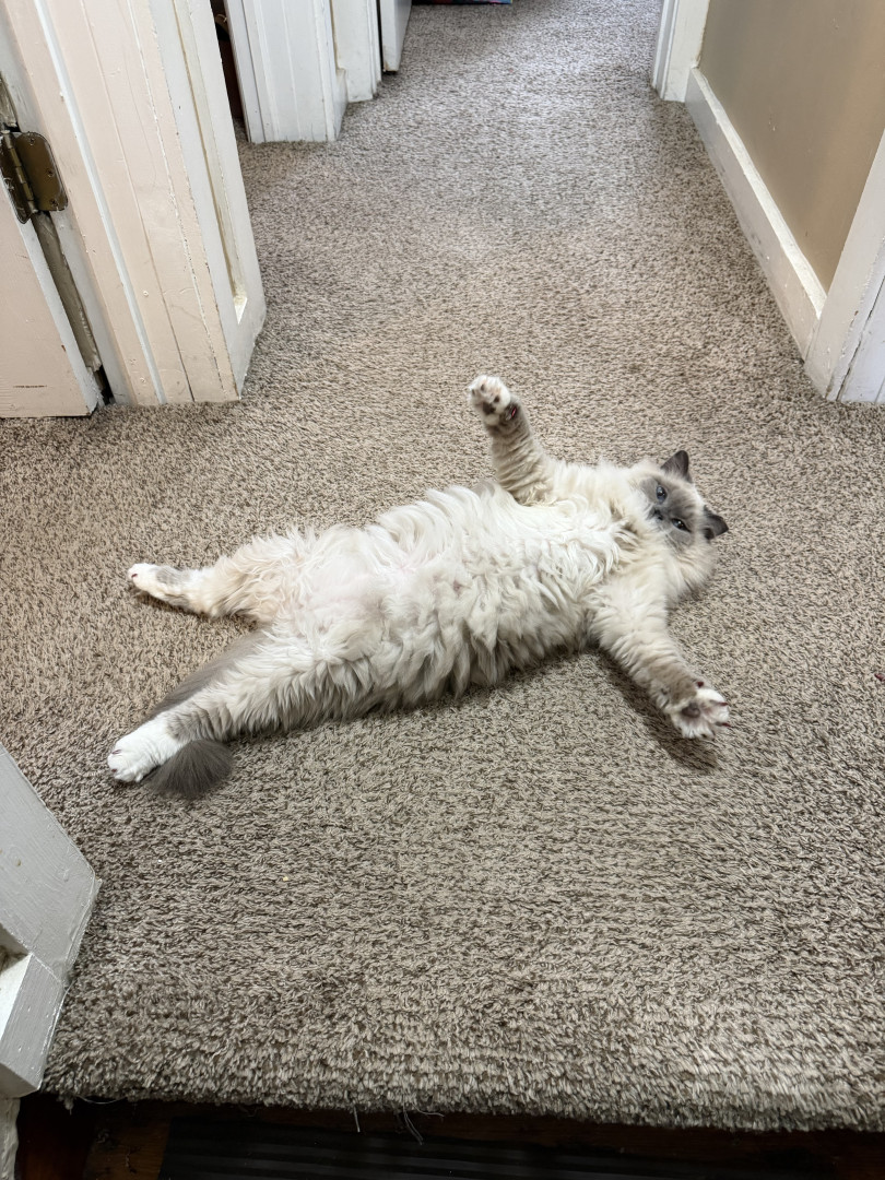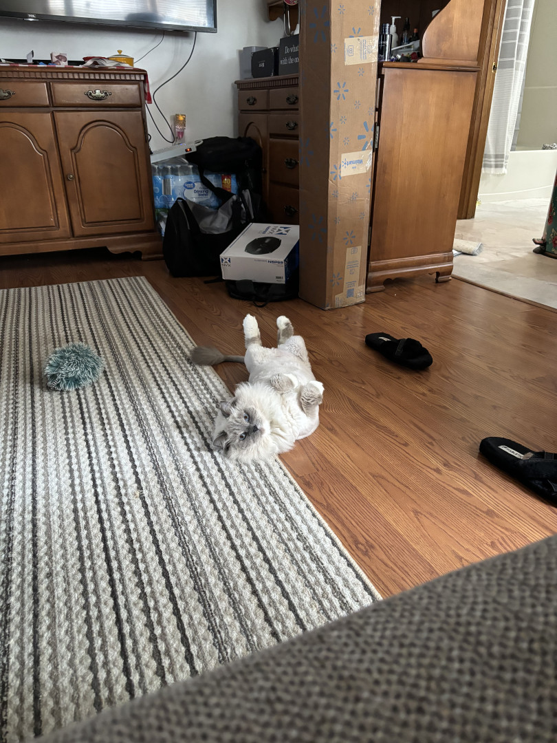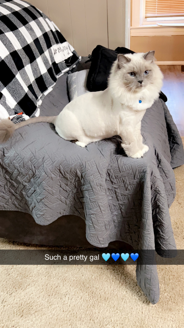 Sapphire’s most unique quality is her pure, affectionate heart. She greets love with total trust—flopping onto her back for belly rubs, rolling happily, and purring nonstop. She’s incredibly social, playful with her dog siblings Smudge and Shadow, and she knows exactly how to “turn it on” for her favorite people, especially grandma and uncle. She radiates kindness.