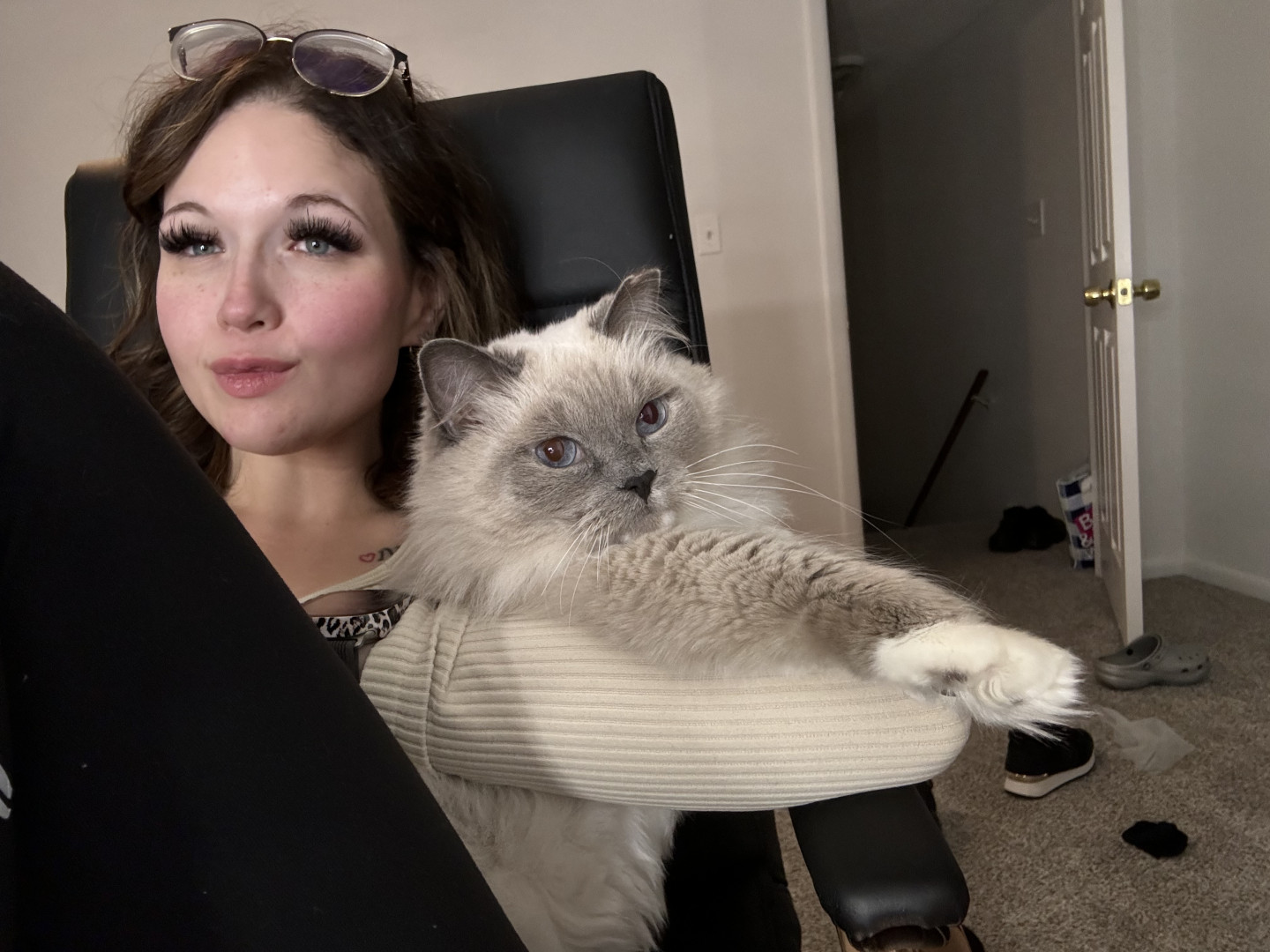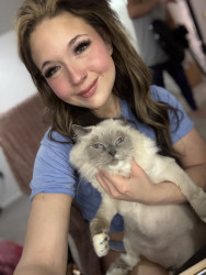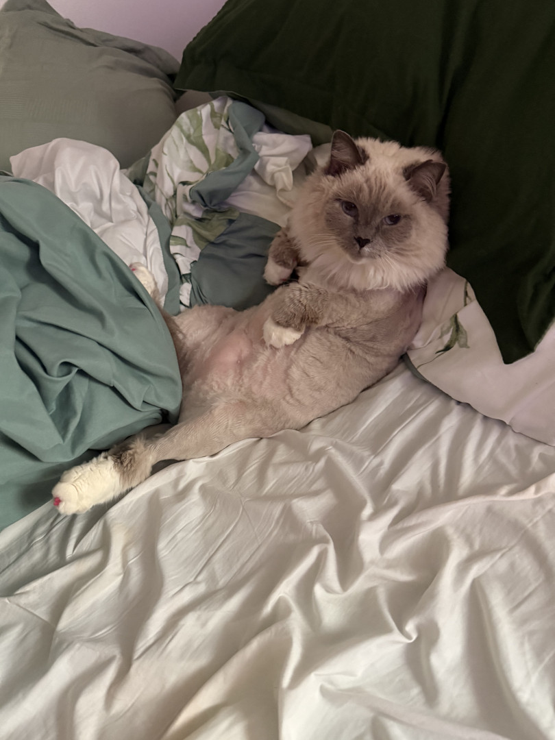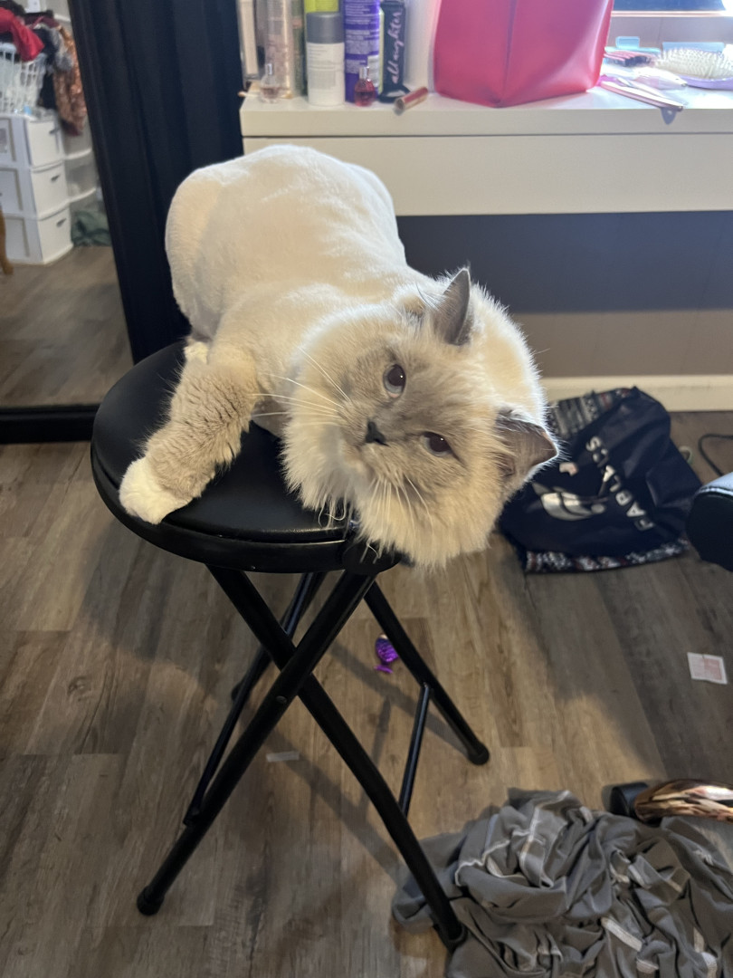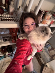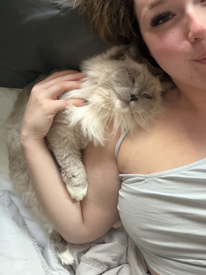 Sapphire’s most unique quality is her pure, affectionate heart. She greets love with total trust—flopping onto her back for belly rubs, rolling happily, and purring nonstop. She’s incredibly social, playful with her dog siblings Smudge and Shadow, and she knows exactly how to “turn it on” for her favorite people, especially grandma and uncle. She radiates kindness.