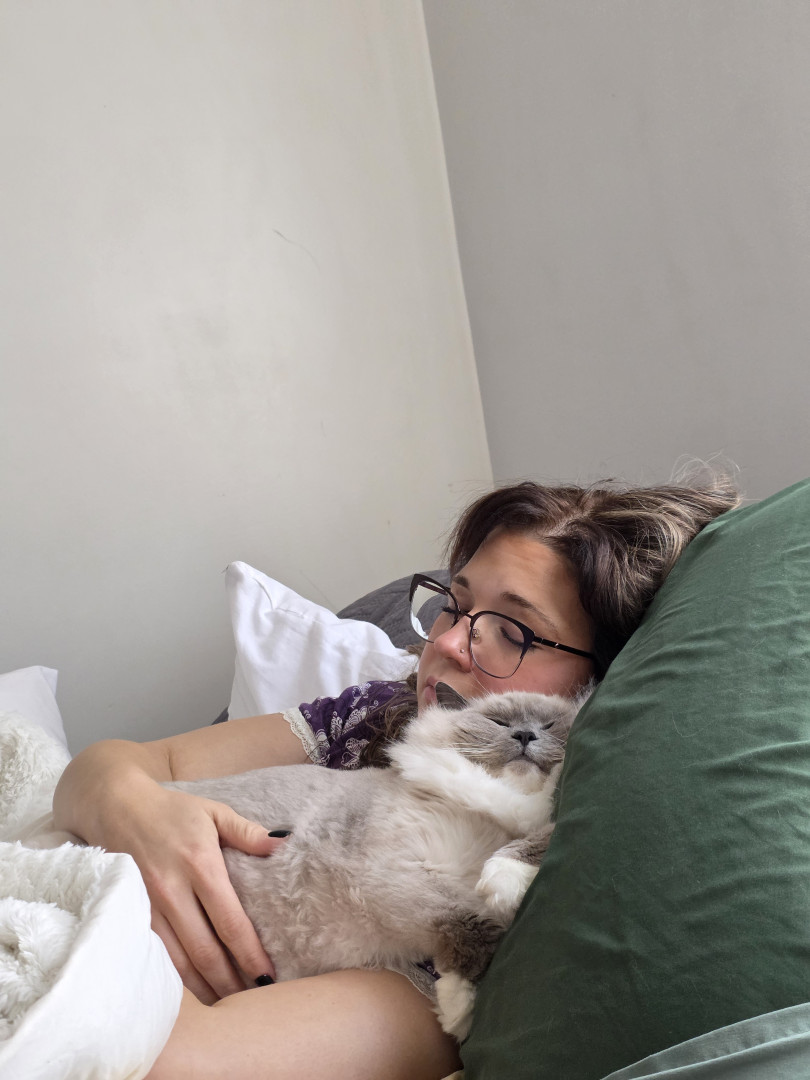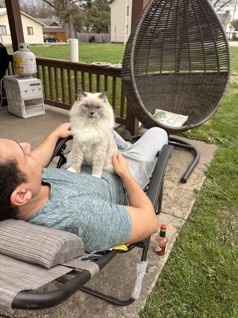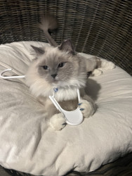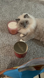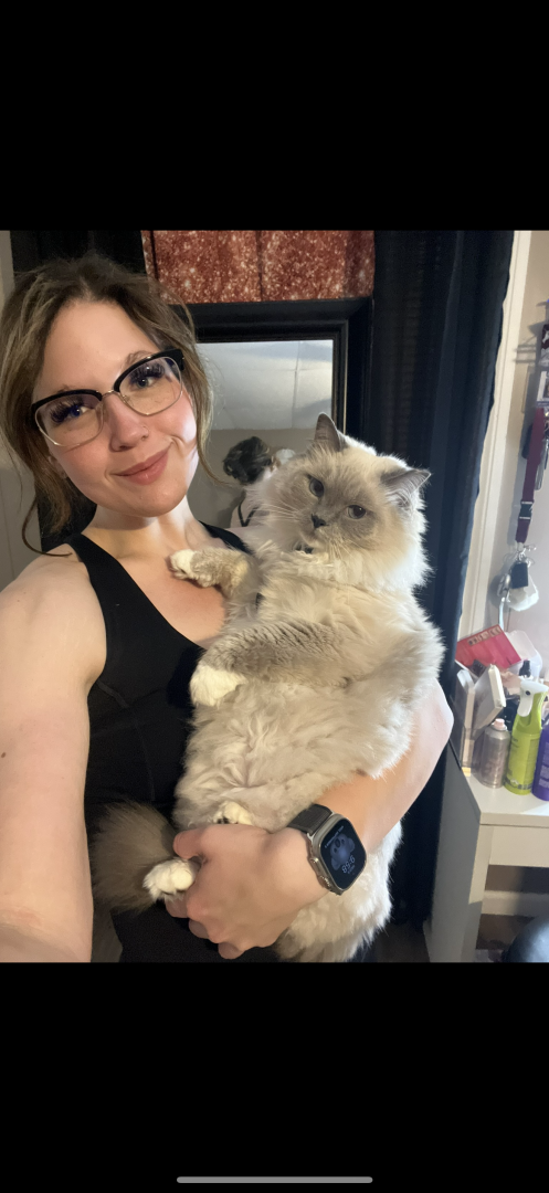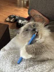 Sapphire is a treat connoisseur who lives for anything salmon or chicken. Her absolute favorites are Mega Chicken Crunchy Temptations and Sheba salmon meaty tender sticks. When it comes to toys, she believes everything is a toy—plastic wrappers, boxes, hair ties she proudly steals, and even my makeup brushes. If it’s playful, she’s in.