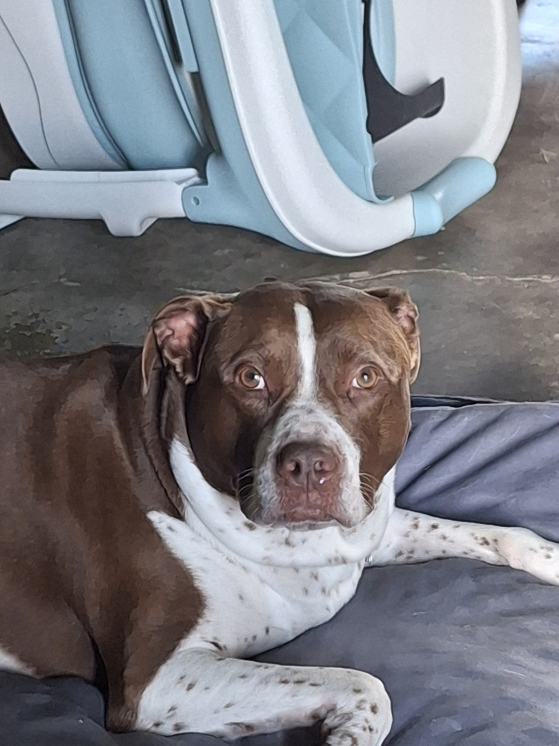 Sarah is 6 years old and a mixed pit. Very active playful and lovable, best dog ever.