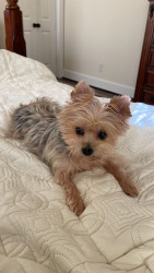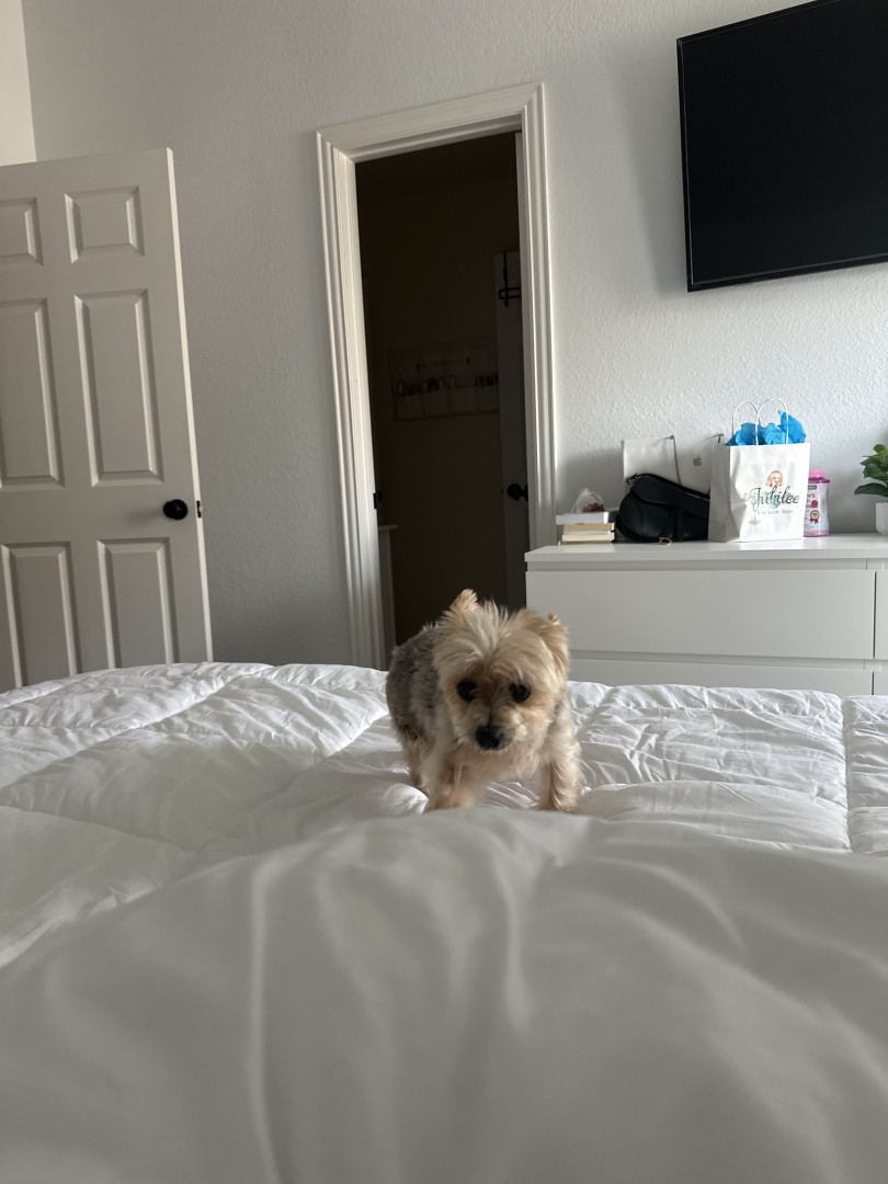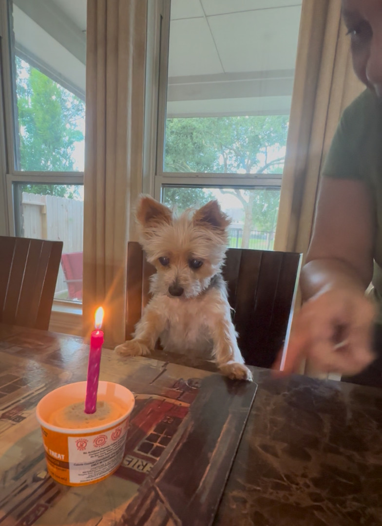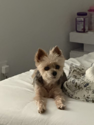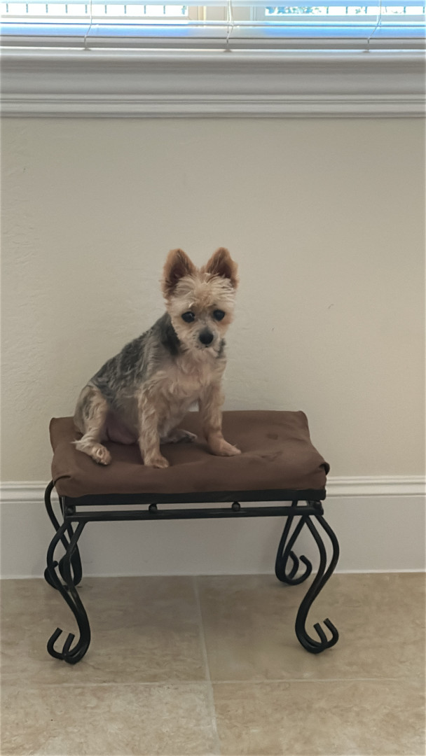 Sasha has an extraordinary emotional intuition. She seems to understand feelings before they’re spoken and responds with quiet loyalty and warmth. Despite her tiny Yorkie frame, she has a calming presence that fills the room. Thirteen years of love have made her wise, gentle, and deeply connected to the people she loves most.