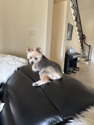 Sasha the Yorkie: tiny, sassy queen with a heart of gold. Loves attention, long walks, good snacks, and showing off her playful personality.