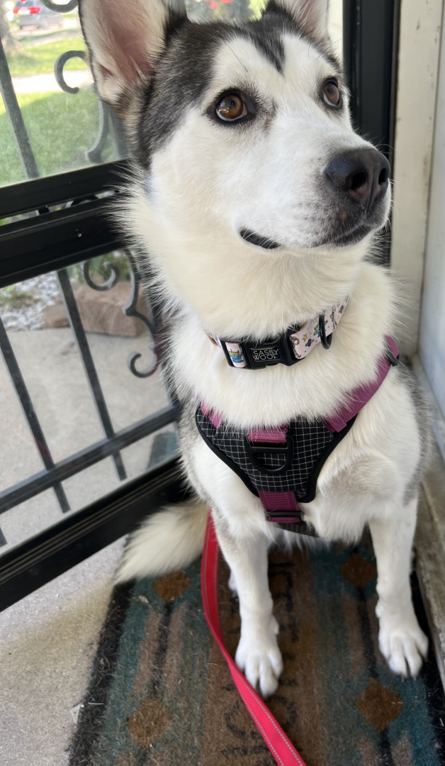 Sasha is a Husky—full of energy, endlessly loving, delightfully goofy, and just a little clumsy. She’s our joyful bundle of chaos and charm.