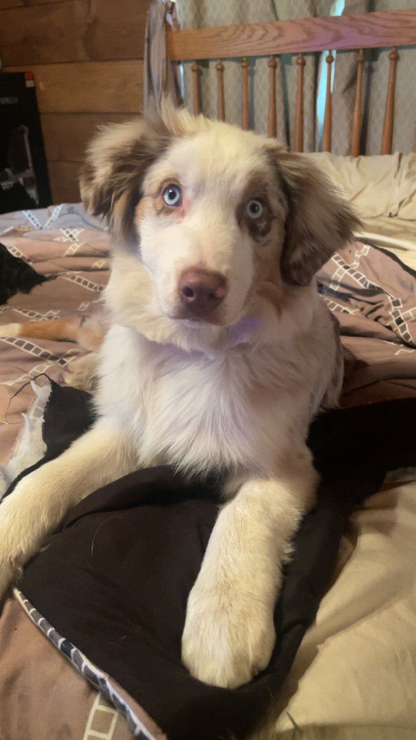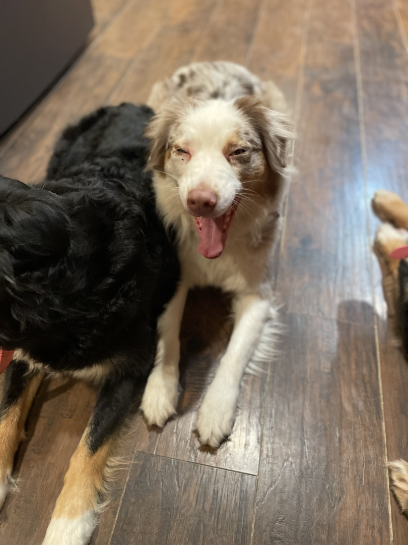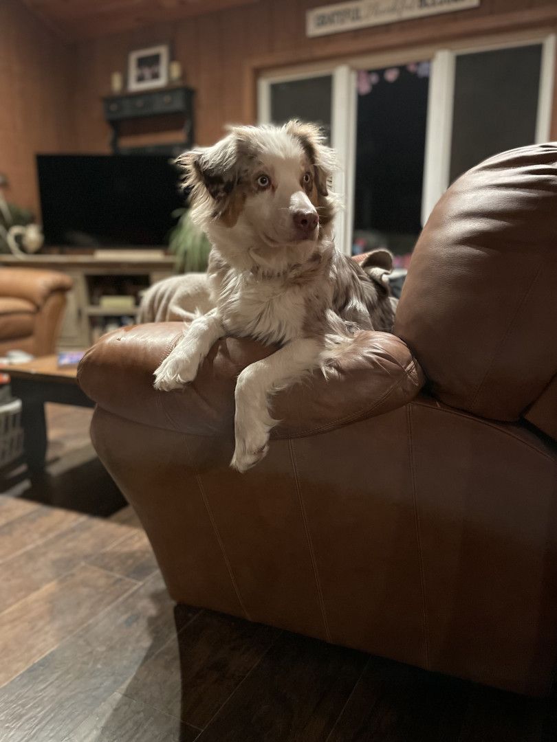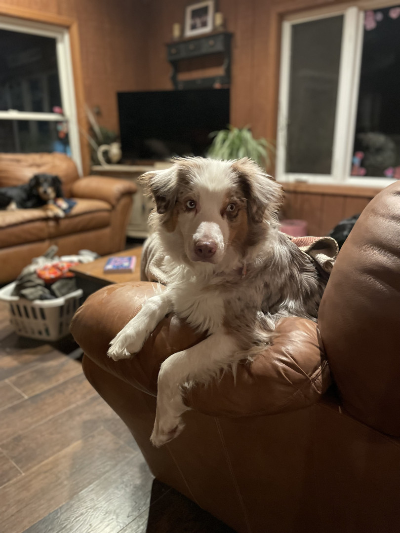 Sassy is a red Merle Australian Shepard who lives up to her name!! She’s a cuddle bug, that always has to be touching you!