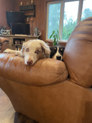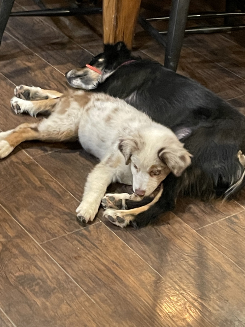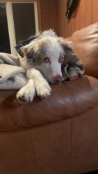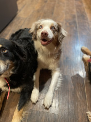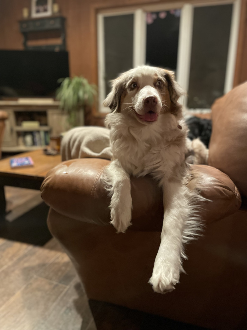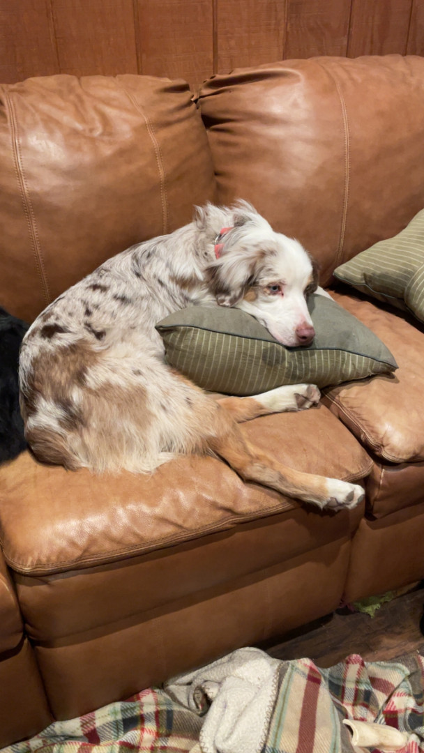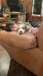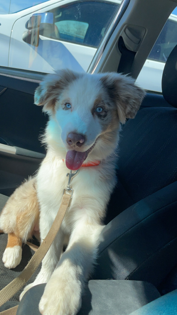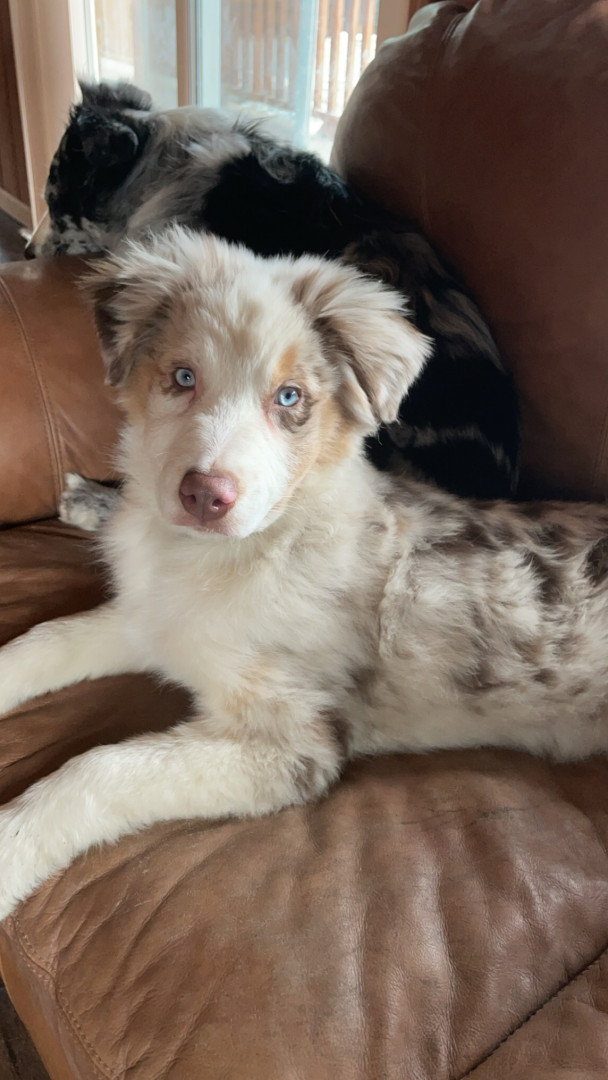 Sassy is a red Merle Australian Shepard who lives up to her name!! She’s a cuddle bug, that always has to be touching you!