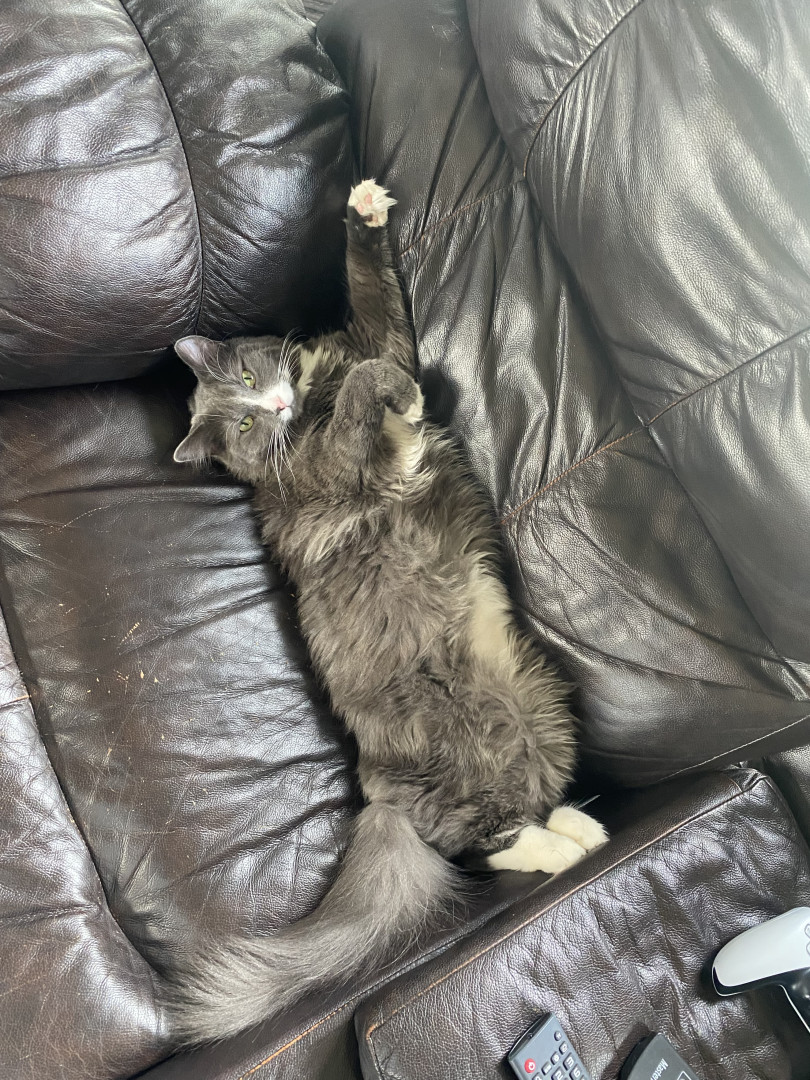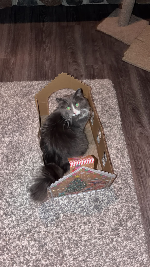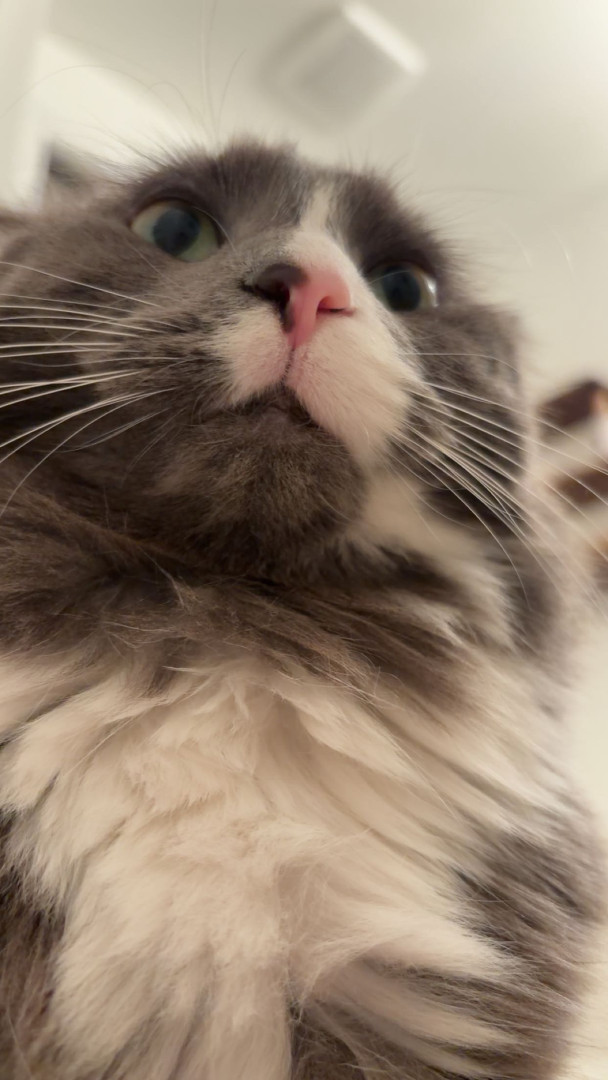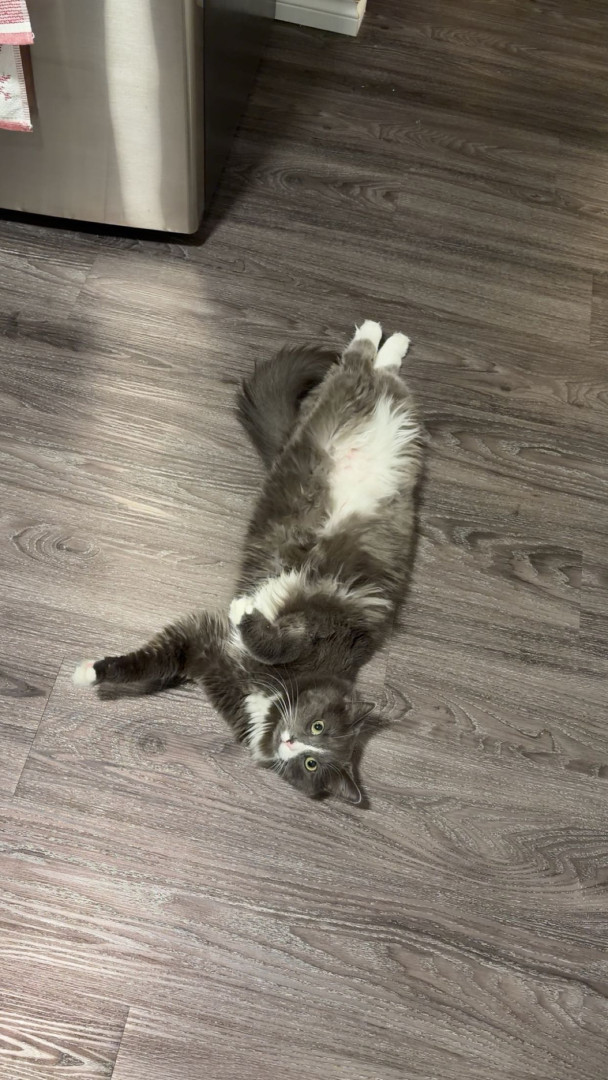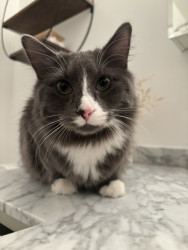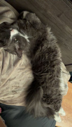 Meet Sassy: fluffy, 2 years old, very opinionated, answers when called, and fully convinced cuddles are mandatory.