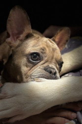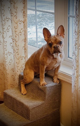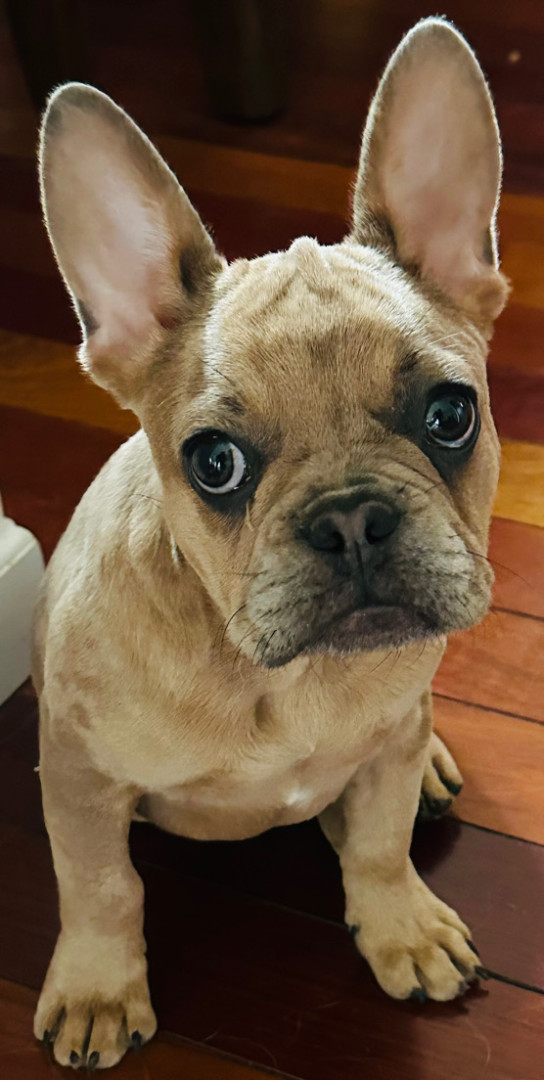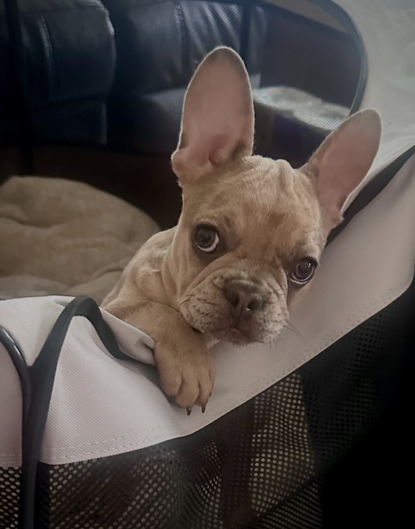 Saturn, the French Bulldog, boosts health & keeps everyone active. The "energizer bunny" has no expressions, so her moods are a trivia game