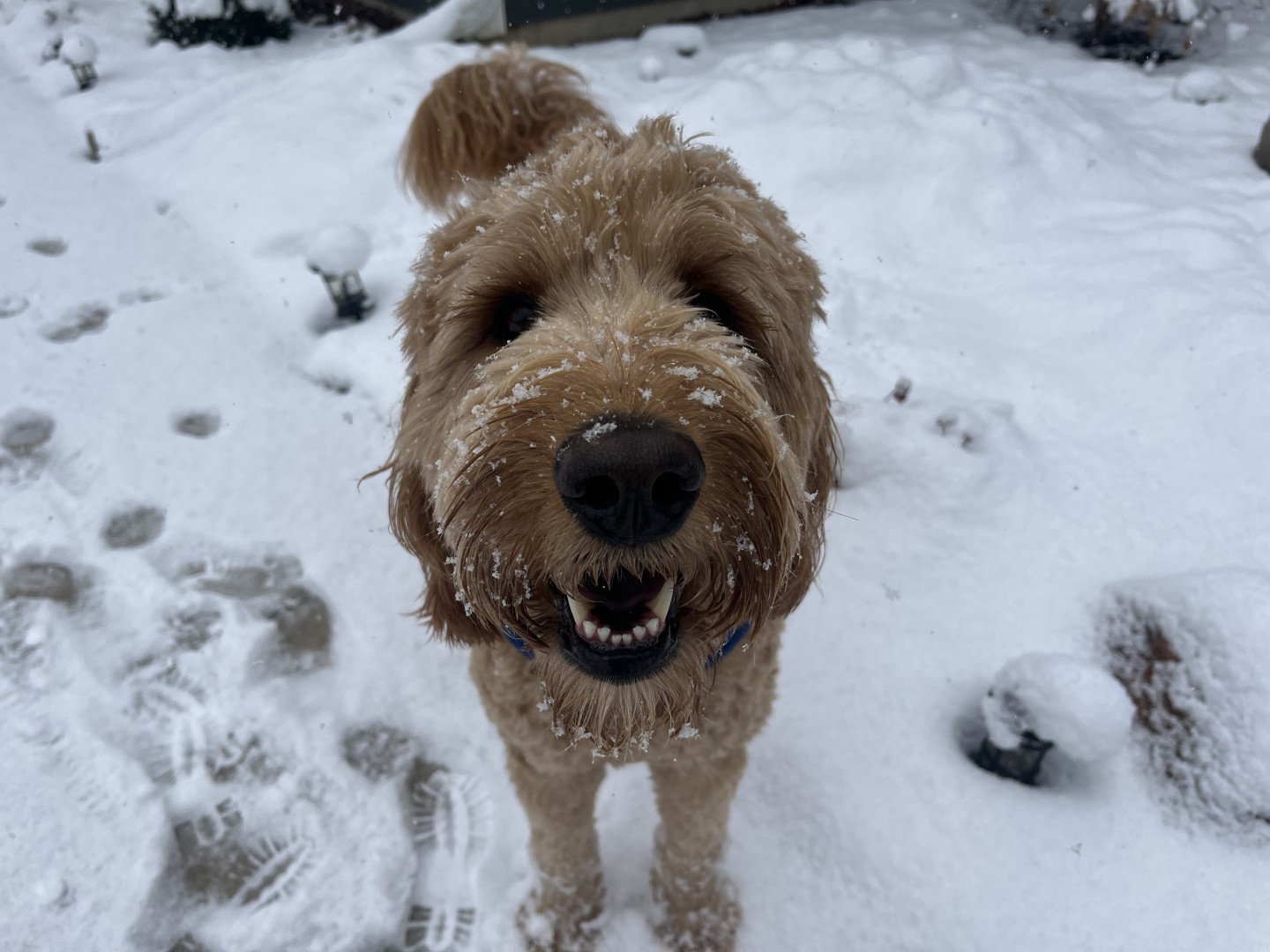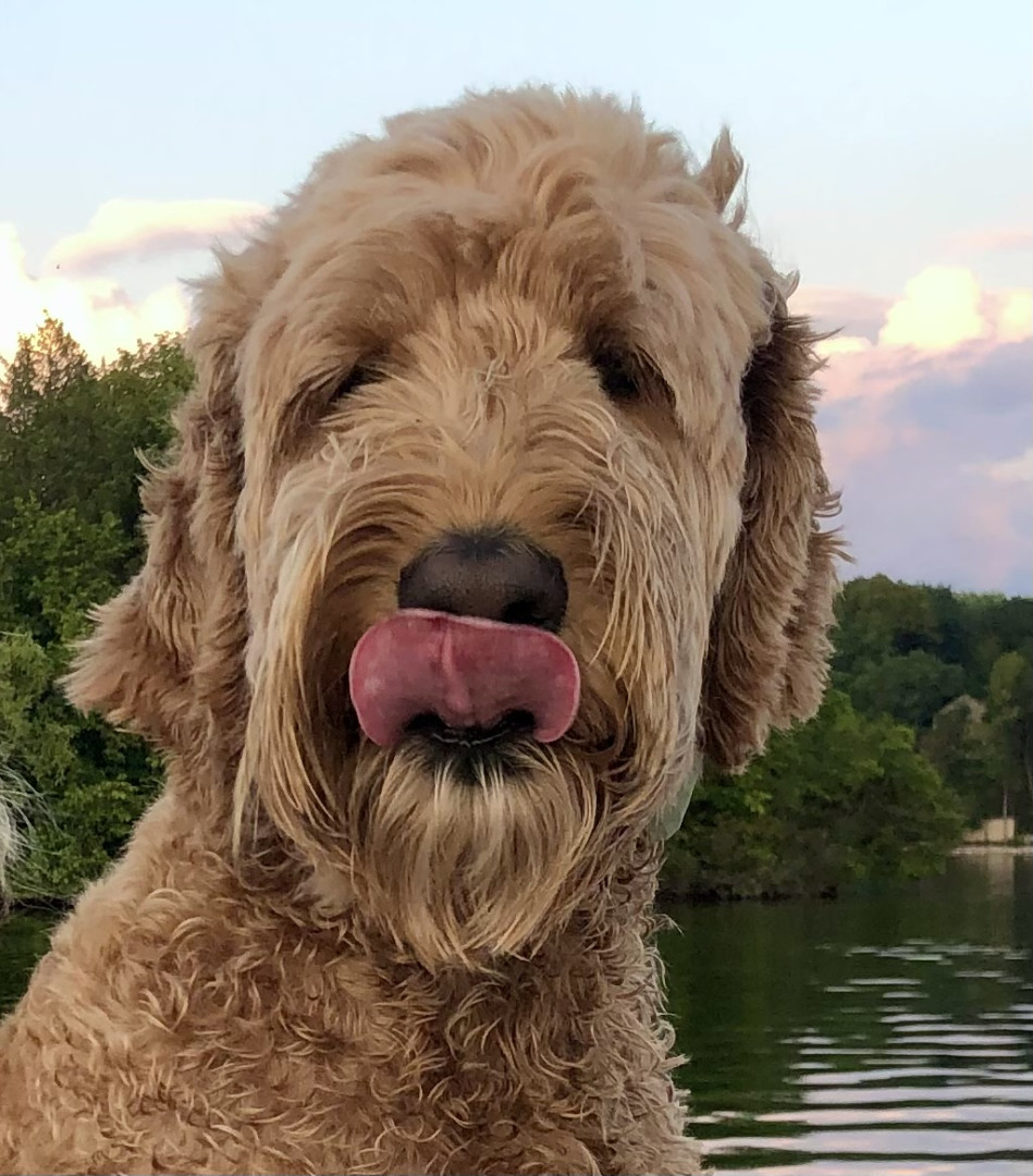 Endless hours of surveying the shallow end of the lake looking for fish even though he’s never caught one. He’s the most uncoordinated dog and cannot catch treats. He’s best at being a big lovable doofus.