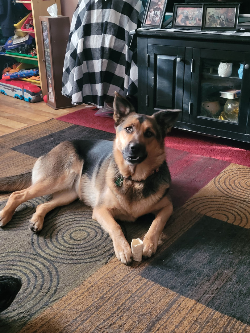 She is the one awesome pup. She loves kids & her brother & sister. She is always happy. The only thing that she don't like is the sound of firetruck. She will howl like snoopy .
