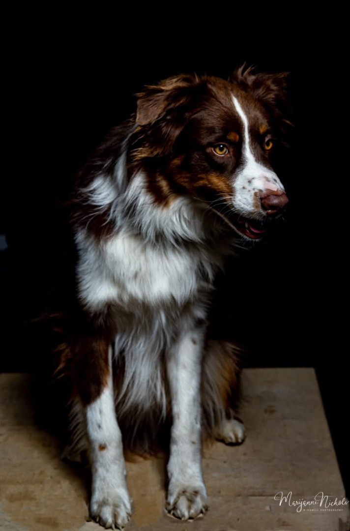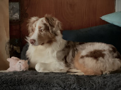 Sayer is a red and white Aussie.. he is one of the most giving dogs I have ever had. Everyone that meets him falls in love him