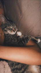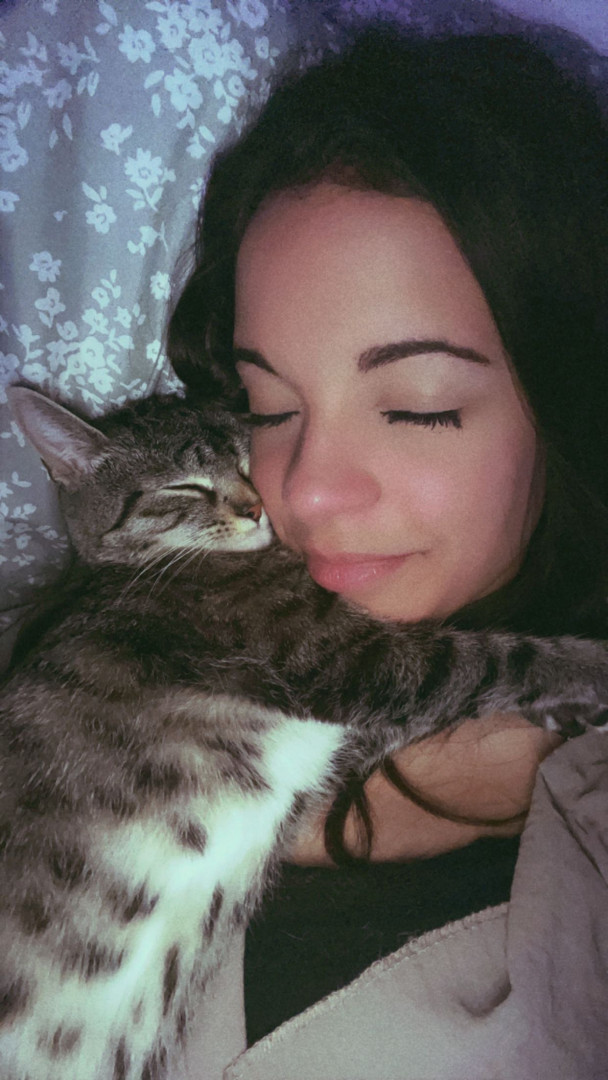 Scarlet is the most affectionate sweetest cat I have ever seen. She licks my tears away when I cry and is the best cuddle buddy in the world. Shes my best friend.