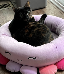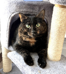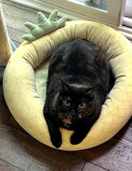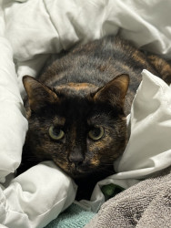 Scarlett has all the personality. She sets her boundaries and lets you know she’s boss. She will lay around for all the pets and face scritches or she’ll let you know by scurrying away if she’s not interested. She’s a sweet girl that comes with weird noises and abrupt reactions.