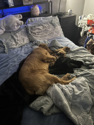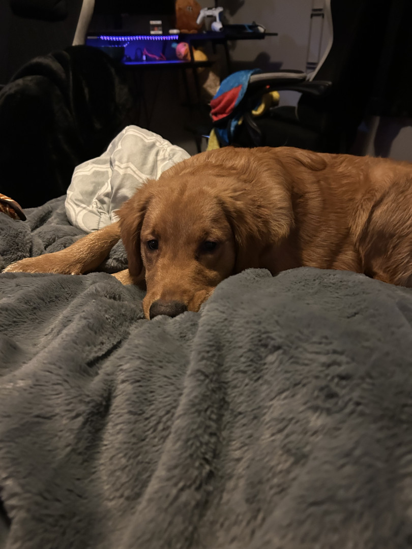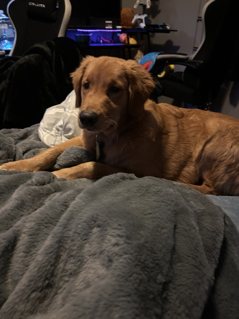 Scooby is a golden retriever who is very energetic and loving
