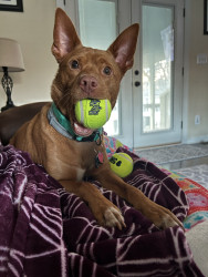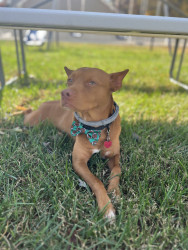 Scooby is a 2 yr pit bull mix who loves treats, friends, family, zoomies and his toys, especially his hedgehog and tennis ball :)