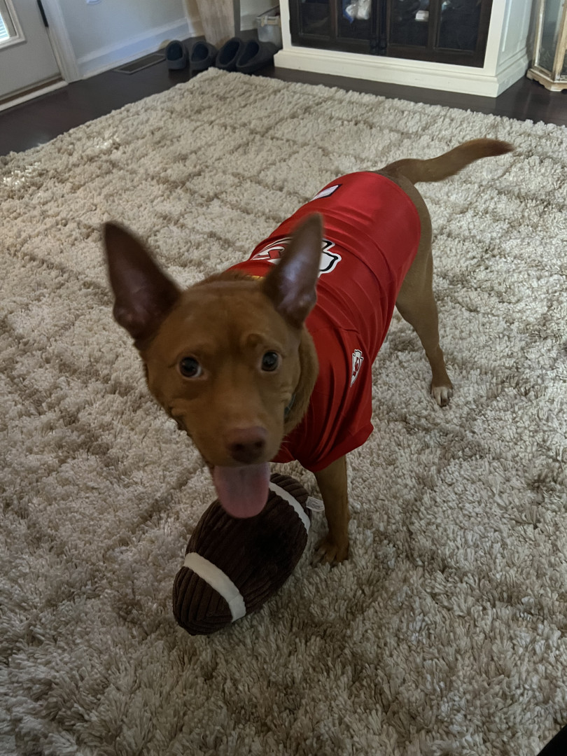 Scooby’s most unique quality is how loyal and respectful he is. He doesn’t chew up anything, he’ll snuggle at any chance he can get, he just loves to be by our sides whatever we do. He’s also a big sports fan. He loves to watch the tv whenever football or basketball is on. Especially nfl, Carolina tarheel basketball, and wnba. He’s learned who the good players are in the wnba.