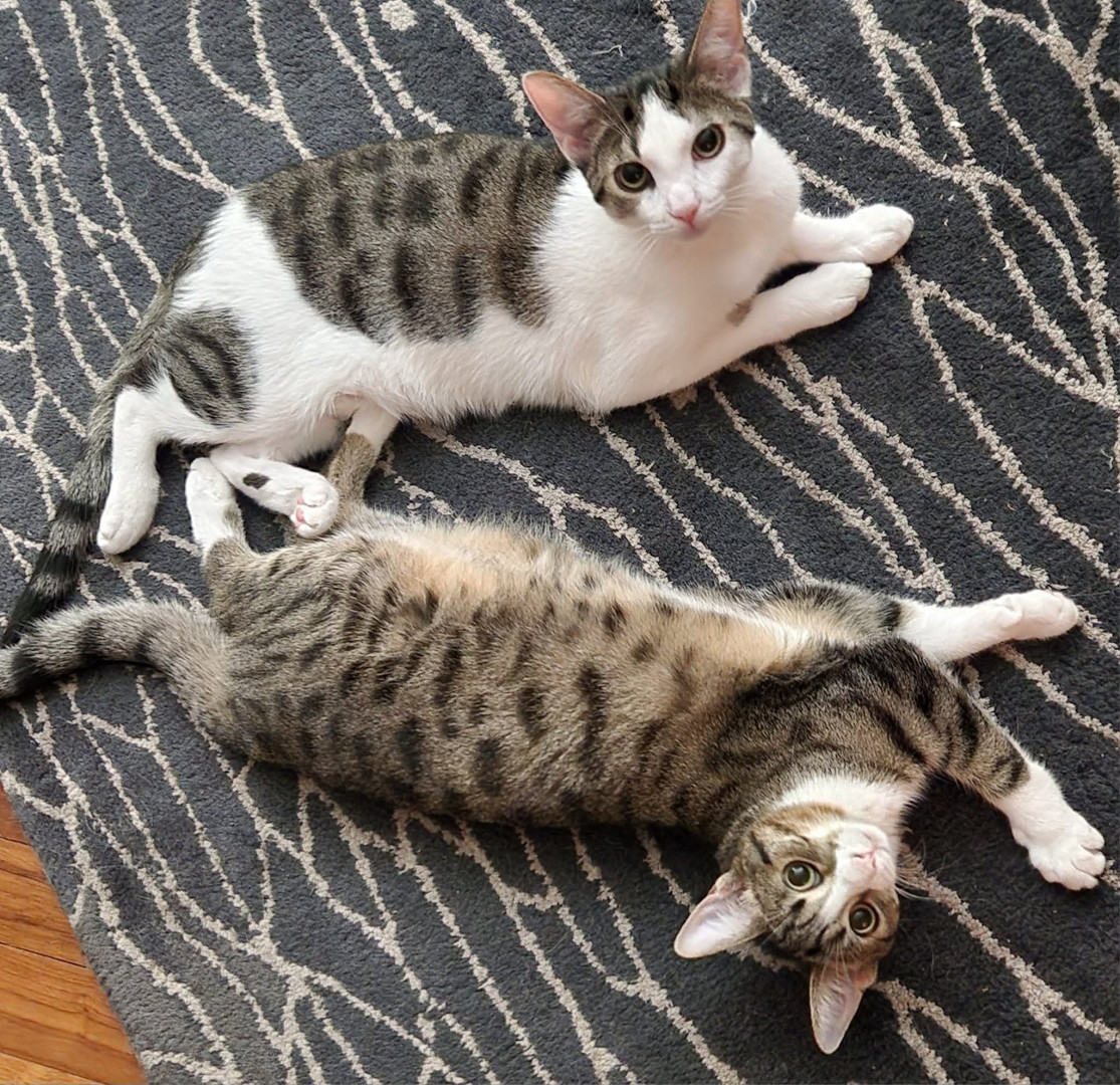 Sister and brother. Spank is an athletic boy and Scotch is a demure girl.