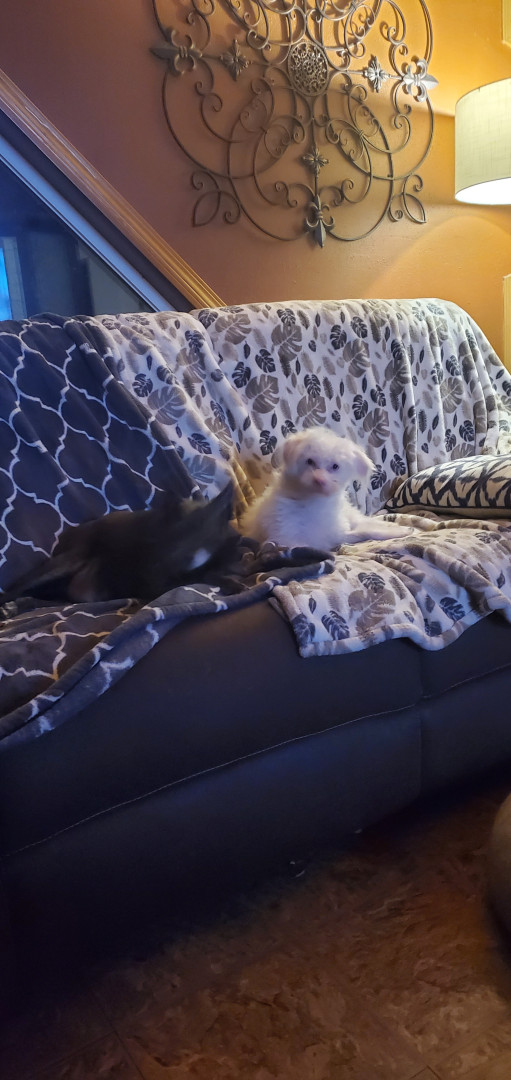 He is so sweet and soft. He's like a big cotton ball. Loves cuddle time. Rolls in a ball next to me. Cuddle time is the best.